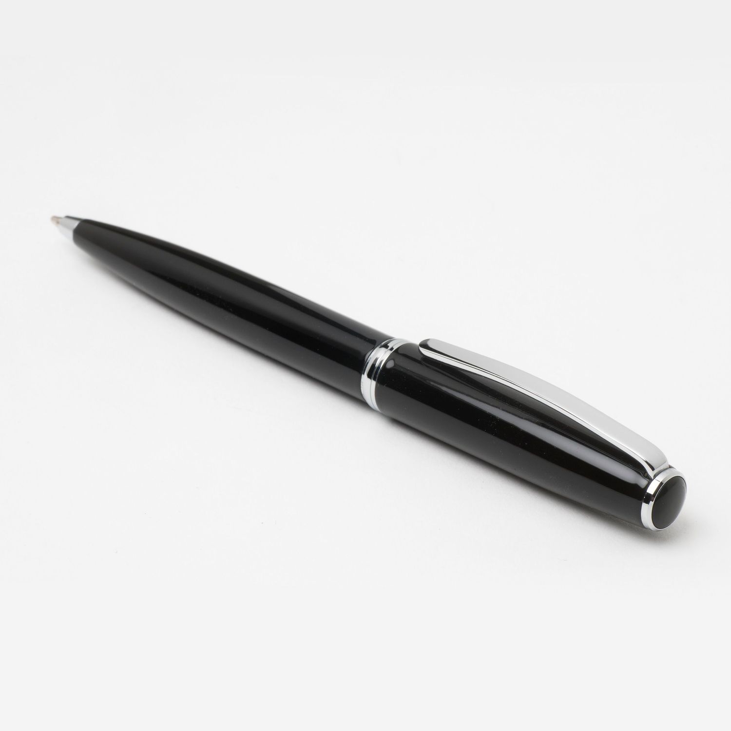 Ponadczasowa linia Coimbra składa się z błyszczącego, czarnego, lakierowanego długopisu ozdobionego chromowanymi akcentami oraz subtelnie wykonanego, matowego, czarnego, miękkiego, teksturowanego folderu.