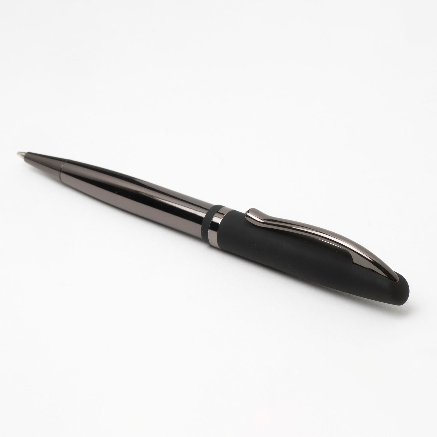 Czarny, miękki w dotyku, lakierowany blat kontrastujący z błyszczącą, pokrytą brązem, dolną beczką i wykończeniami nadaje pióru Faro nowoczesny wygląd.