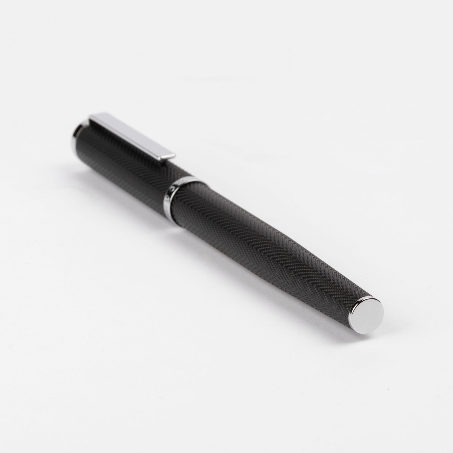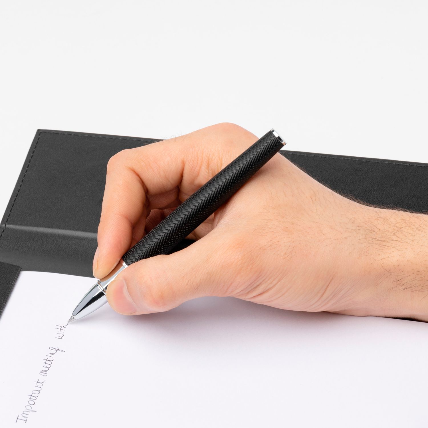 Pióro kulkowe Herringbone jest ponadczasowe i eleganckie, a jego wyrafinowany wzór przypominający garnitur domu mody. Ta nowa interpretacja ikonicznego zarysu formacji jest ozdobiona wyrazistymi chromowanymi akcentami.