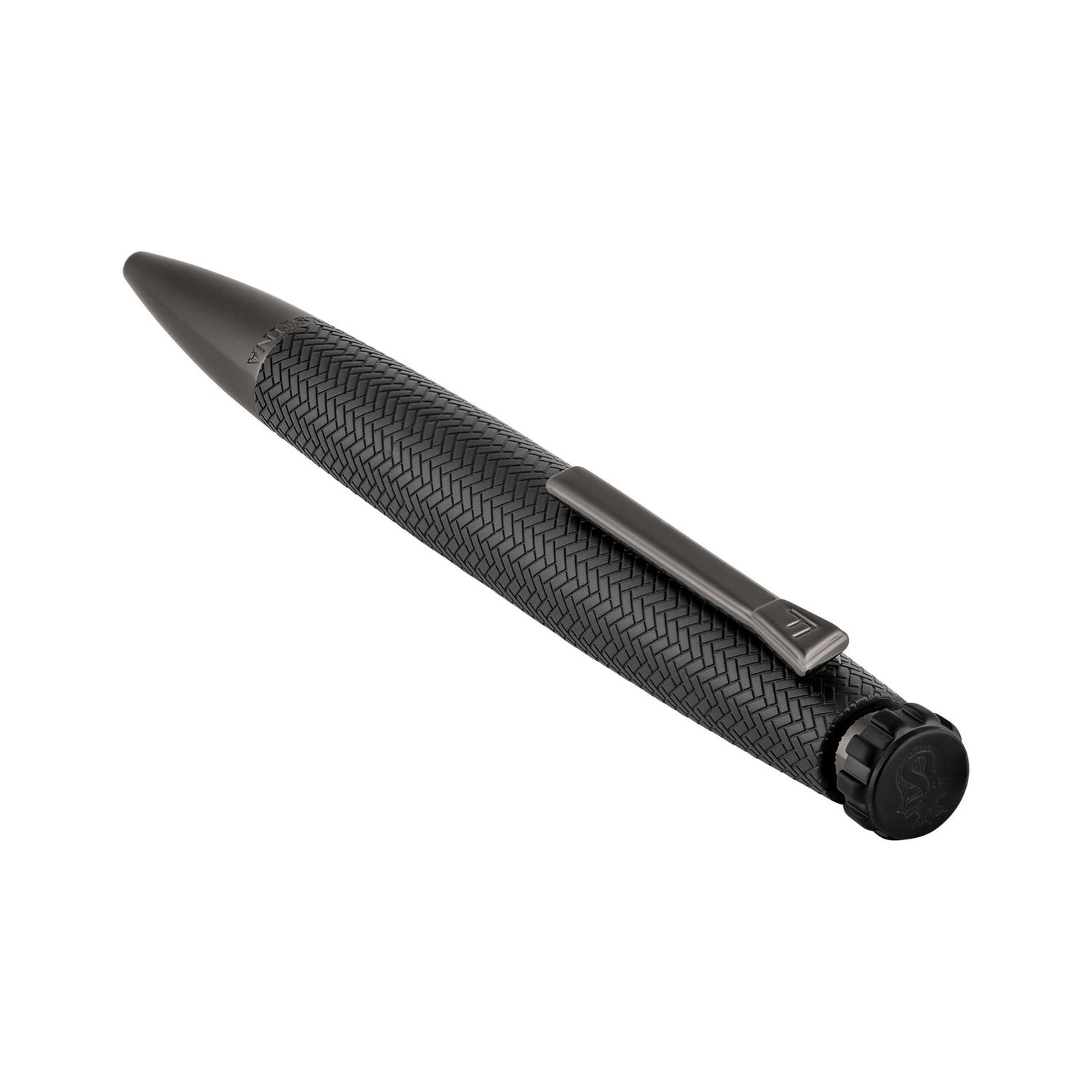 The Interlace ballpoint pen in black and gunmetal is built on the best-selling Chronobike shape and elevated with a woven-inspired surface texture drawn from the eponymous line, bringing depth and sophistication to its tapered, aerodynamic silhouette. This new edition introduces a refined luxe dimension, while the blazon logo engraved on the signature top feature—reminiscent of a watch button—serves as a distinctive Festina hallmark. Presented in a beautiful, understated black palette with gunmetal trims, it offers a modern, active feel with a polished finish.