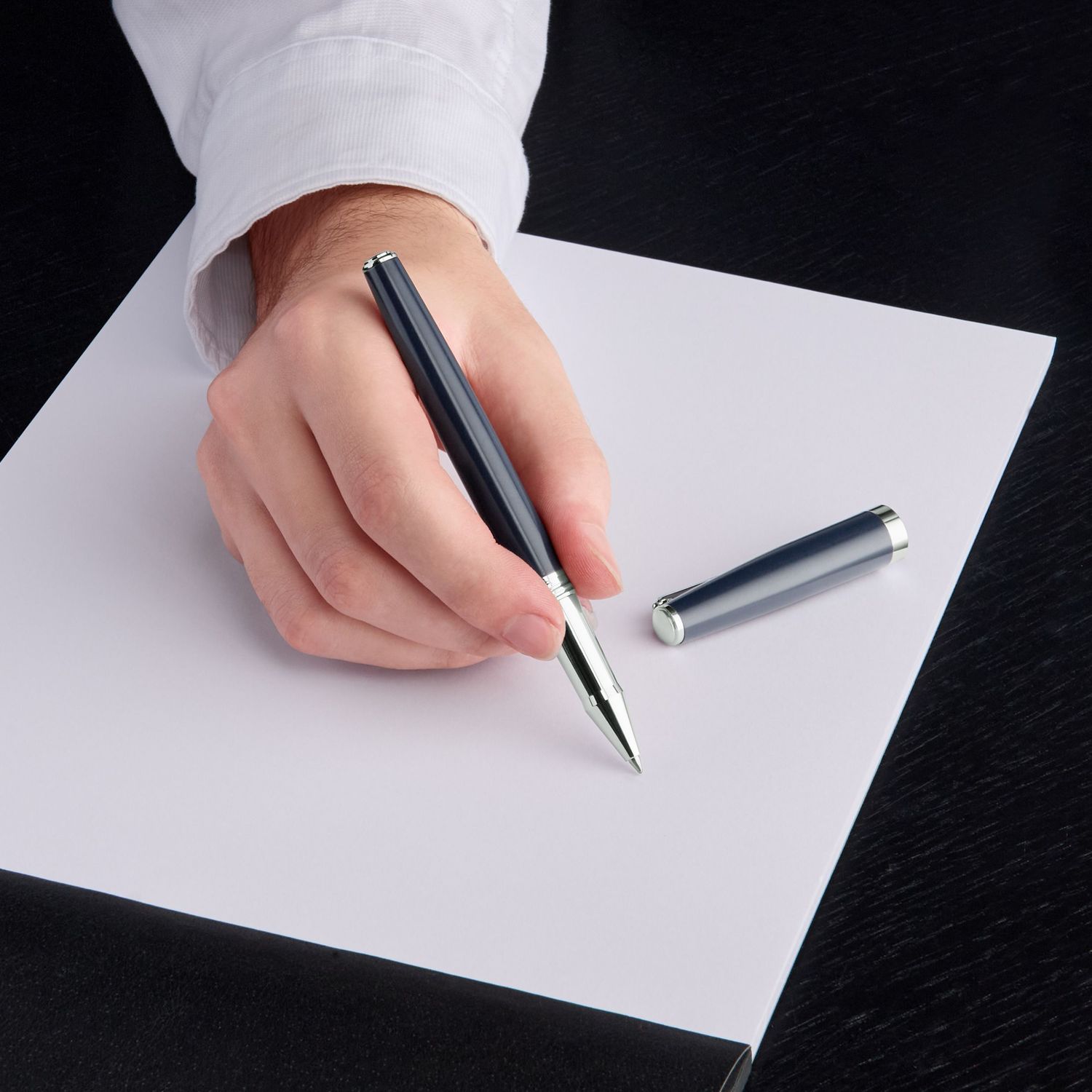 Wyrafinowany dodatek do serii Cerruti 1881 Islington, to pióro kulkowe wyróżnia się matowym granatowym wykończeniem i chromowanymi wykończeniami. Zakręcana skuwka i logo CRR na klipsie dodają luksusowych detali do smukłej i funkcjonalnej konstrukcji, idealnej do codziennego użytku lub na prezent.