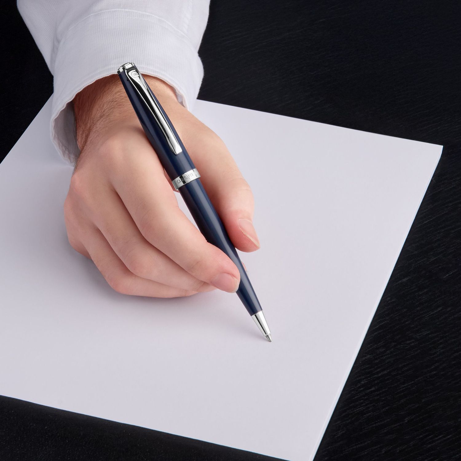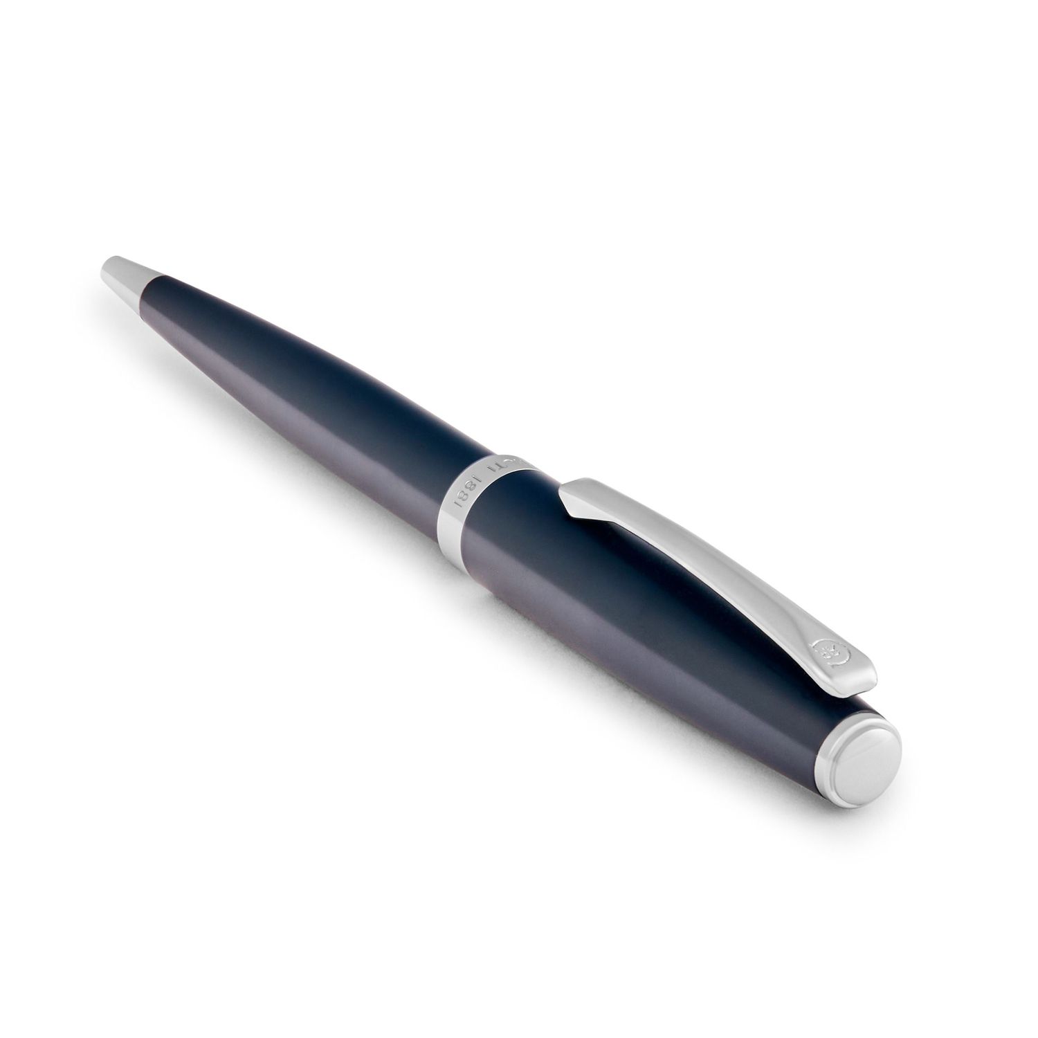 Ten długopis z serii Cerruti 1881 Islington oferuje ponadczasowy, ale nowoczesny design. Posiada matowe granatowe wykończenie w połączeniu z chromowanymi wykończeniami, jego smukły profil i logo CRR na klipsie odzwierciedlają zarówno elegancję, jak i praktyczność, uosabiając uniwersalny urok.