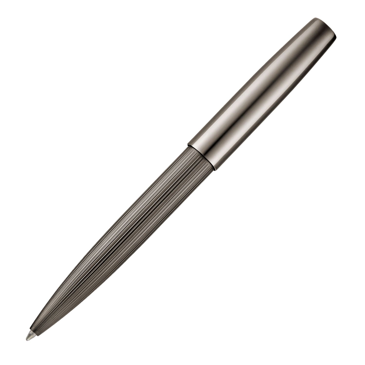 The Cerruti 1881 gunmetal ballpoint pen embodies luxurious minimalism through a smooth cap engraved with the new two-row Cerruti 1881 logo, contrasted by a pinstripe-engraved lower barrel. Its deep, elegant gunmetal finish brings depth and modern sophistication to a clean, architectural silhouette.