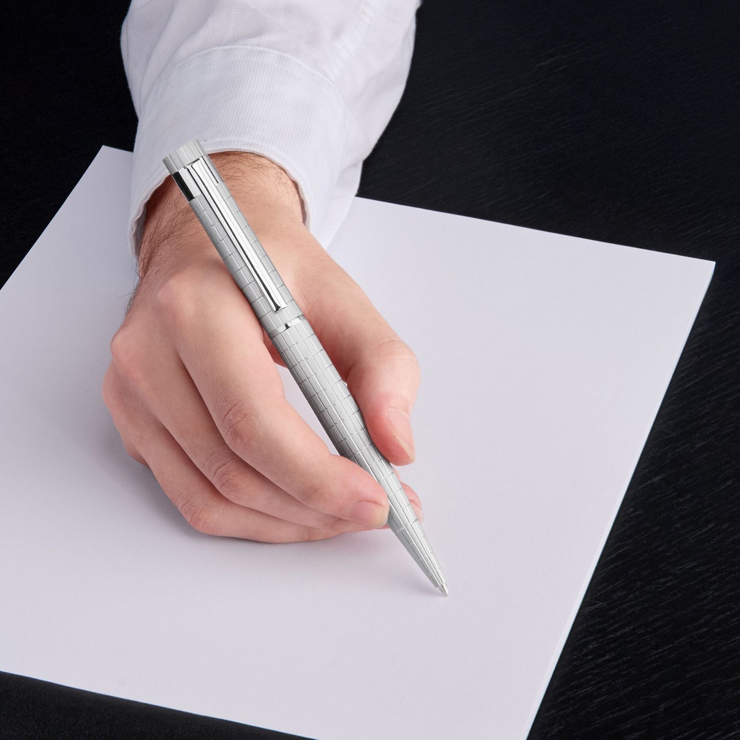 Sylwetka instrumentu piśmiennego LOOP łączy w sobie zdecydowanie aktywne i nowoczesne elementy konstrukcyjne, aby zapewnić optymalne wrażenia podczas pisania. W tej nowej edycji, inspirowanej architekturą Bauhaus, na szczotkowaną aluminiową powierzchnię naniesiono uderzający geometryczny wzór siatki. Połączenie motywu i tekstury wprowadza elegancki, graficzny akcent, oferując świeży element wizualny, który podkreśla dynamiczną formę pióra. Pióro jest sygnowane podwójnym logo B w górnej części.