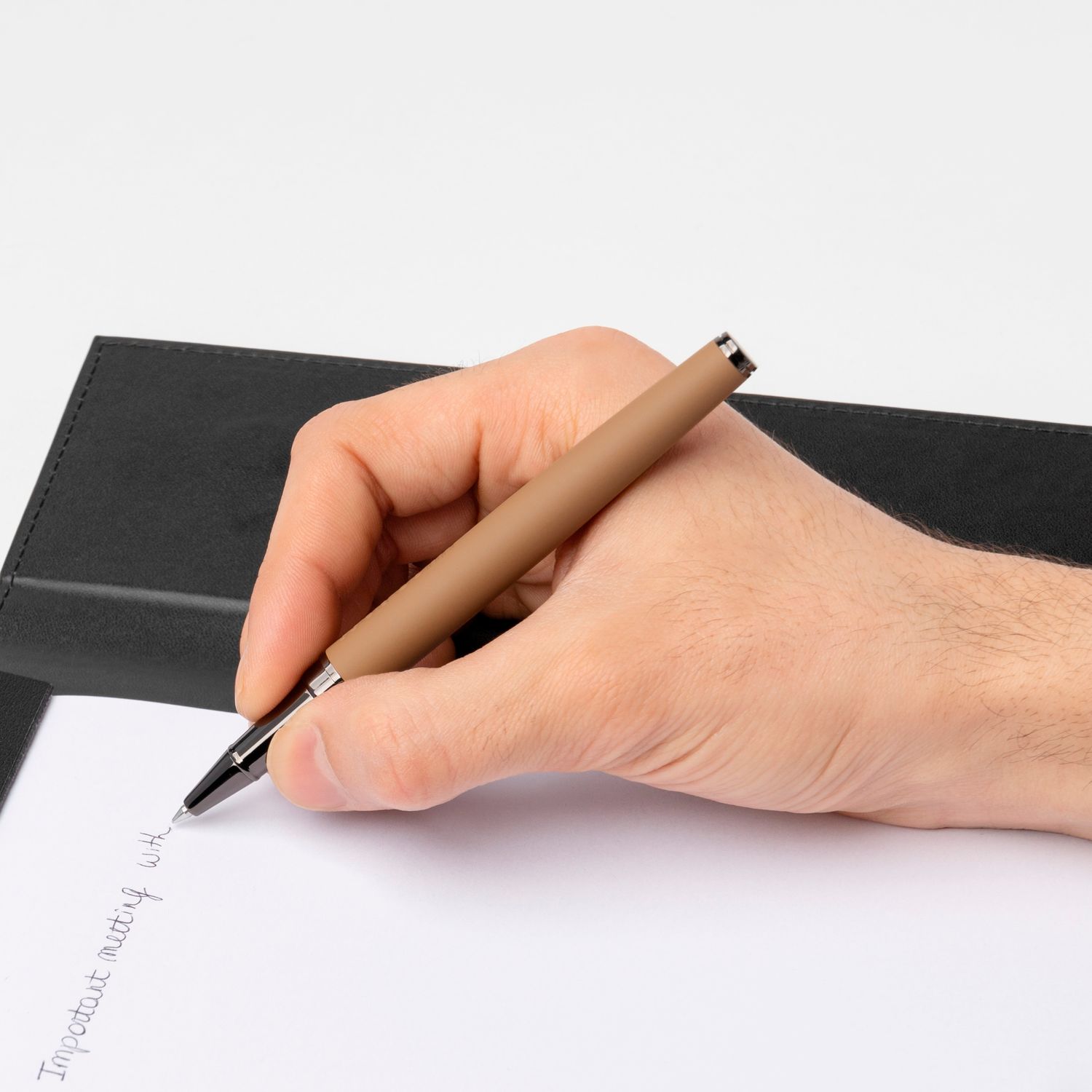 Sylwetka tego instrumentu piśmienniczego jest zdecydowanie aktywna i nowoczesna, co zapewnia optymalne wrażenia podczas pisania. Miękka powierzchnia, niespodziewane umieszczenie logo i ikoniczne paski sprawiają, że jest to najlepszy nowoczesny przybór do pisania.