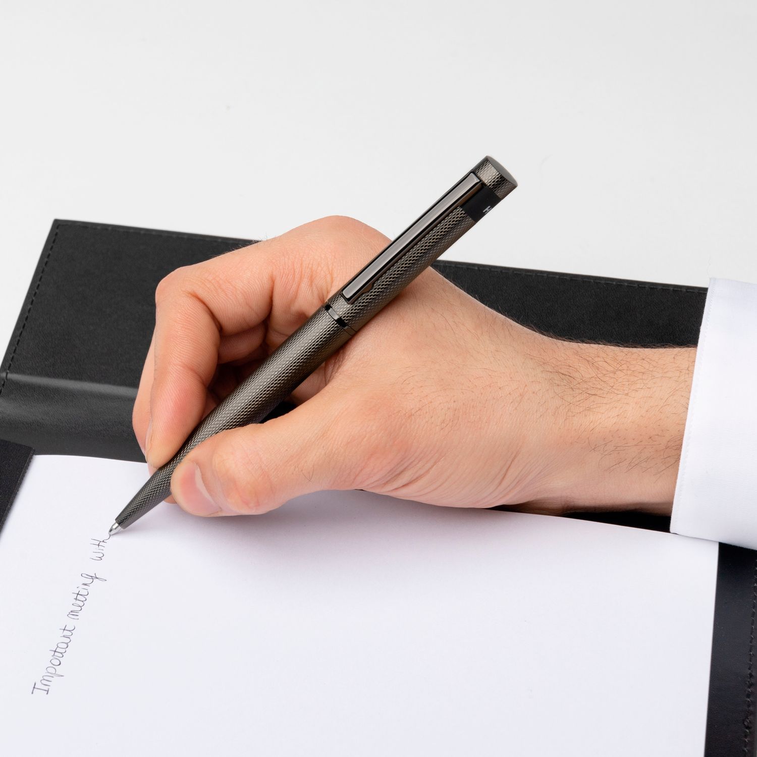The Loop writing instrument silhouette combines resolutely active and modern design elements, creating an optimal writing experience. This pictured version features a matte diamond-cut pattern mixed with a soft-touch printed surface for a graphical and modern haptic.
