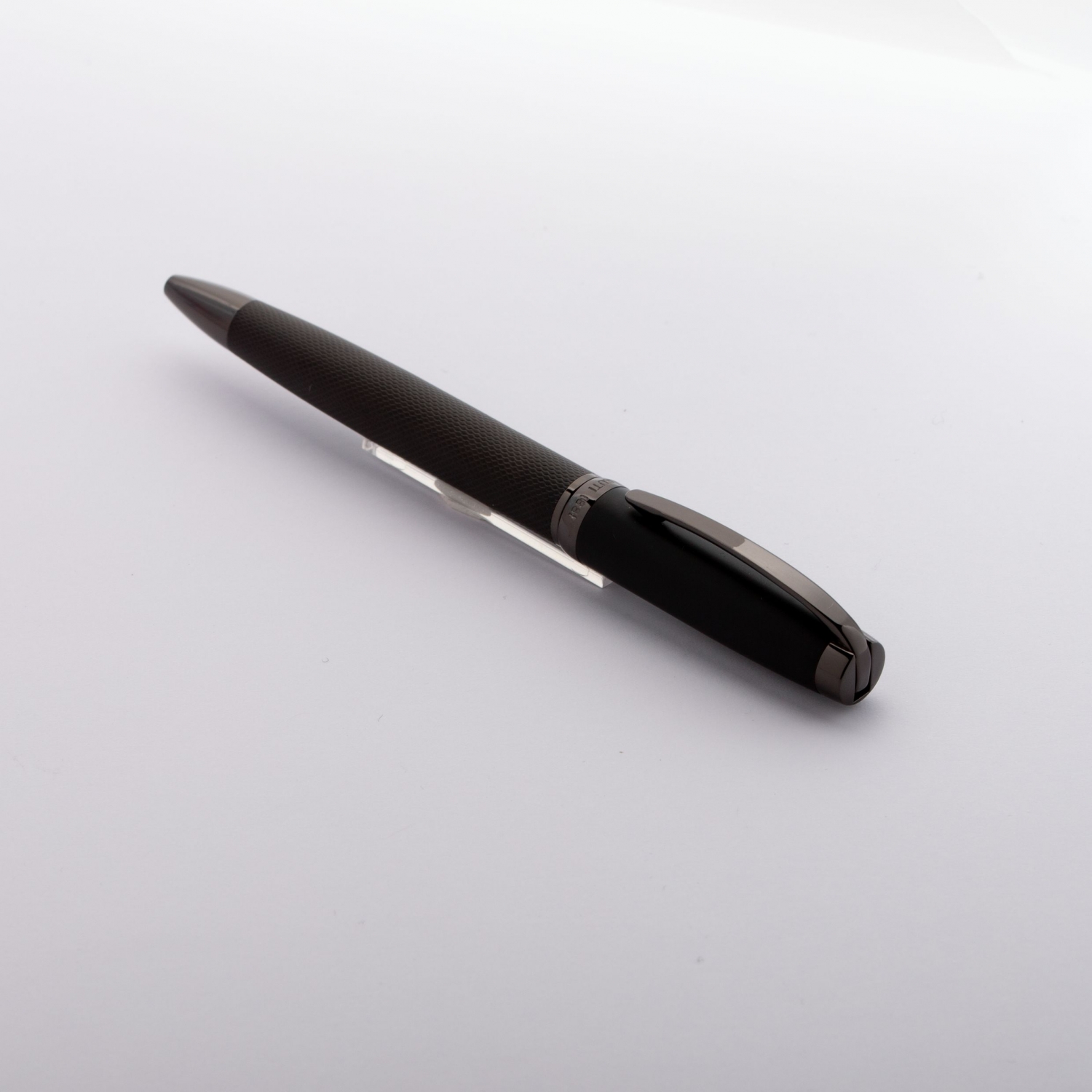 Od miękkiej, matowej, czarnej, lakierowanej nasadki po wygrawerowany korpus w kolorze czarnego diamentu, ozdobiony błyszczącymi, metalowymi lamówkami, długopis Myth jest pełen kontrastów, które nadają mu luksusowy i nowoczesny wygląd.