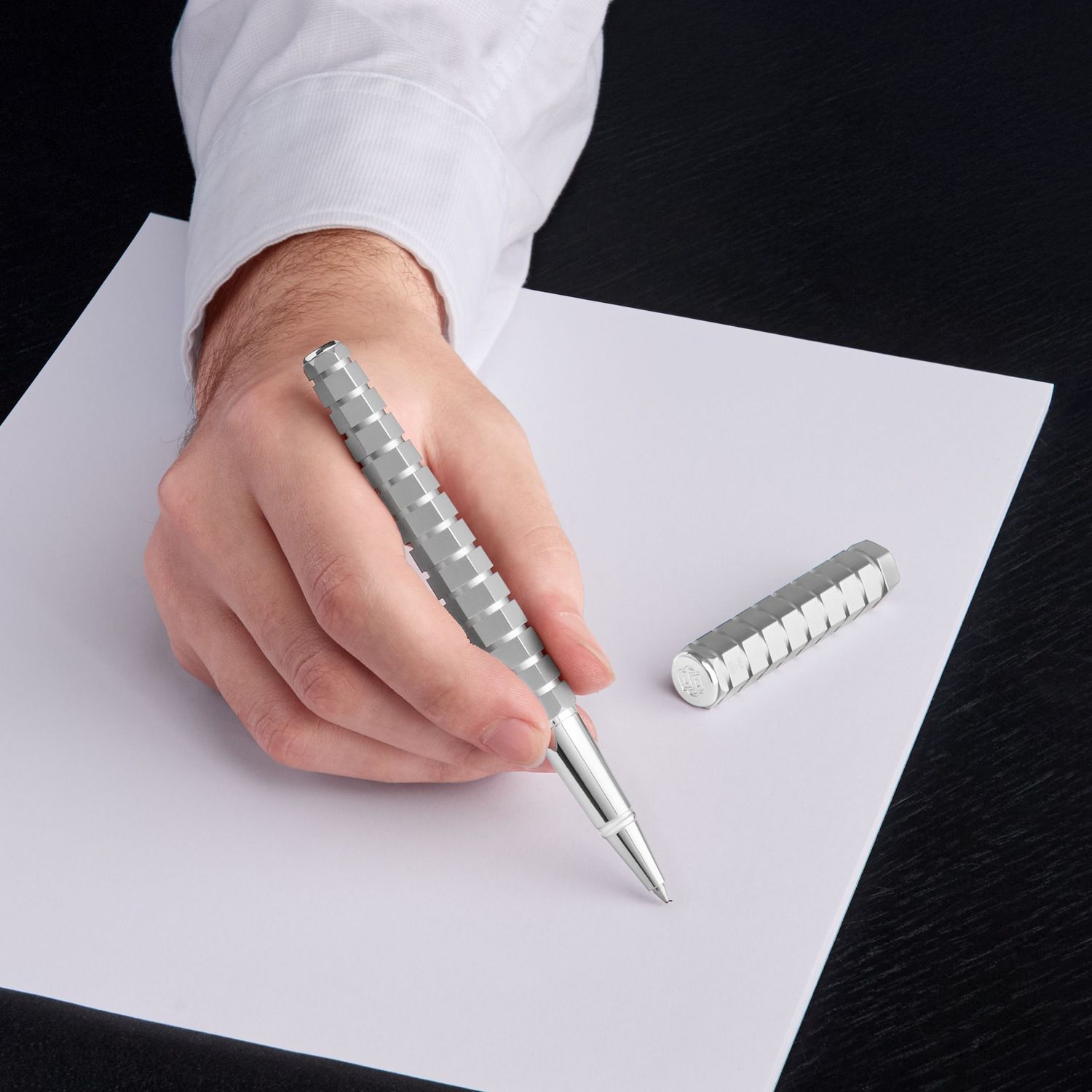Ten ekskluzywny artykuł piśmienniczy jest edytowany w ograniczonej ilości, a każdy egzemplarz jest numerowany. Ten wyjątkowy przedmiot jest dostarczany w specjalnym, limitowanym opakowaniu, z kartą gwarancyjną chronioną w luksusowym skórzanym etui. Oparty na uderzającej sześciokątnej formie, kanciastość tego pióra jest podkreślona przez serię rzeźbiarskich prostokątnych smug. Zacierając granicę między rzeźbą a architekturą, ten wyjątkowy instrument piśmienny jest w pełni pokryty minimalistycznym matowym chromem, dzięki czemu unikalny design zajmuje centralne miejsce
