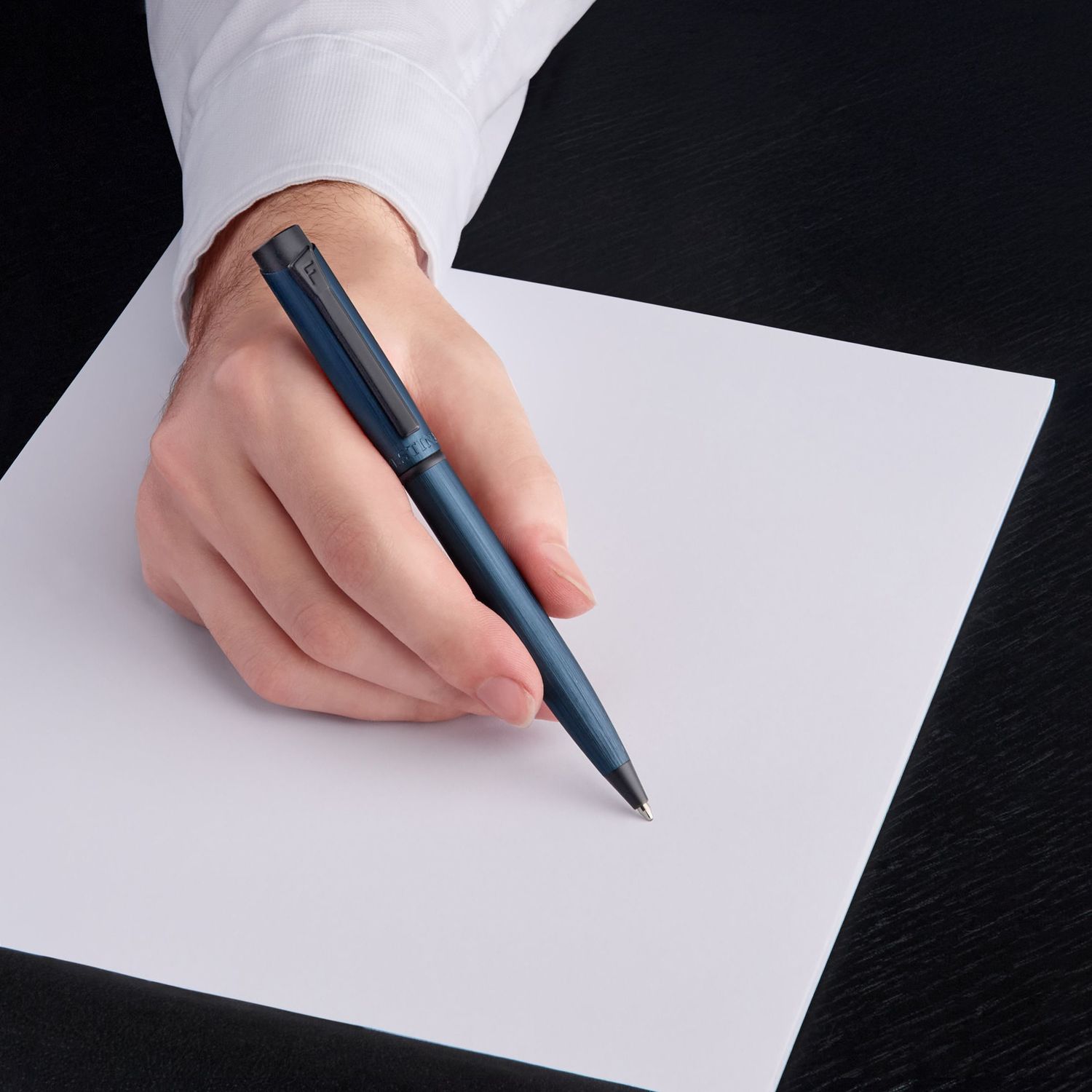 Nowy długopis „Originals” z niebieskiego szczotkowanego aluminium z matowymi czarnymi wykończeniami to elegancki i wszechstronny instrument piśmienny. Żywe niebieskie wykończenie dodaje nowoczesnego akcentu minimalistycznej oprawie, podczas gdy matowe czarne wykończenia zapewniają wyrafinowany kontrast. Starannie wykonany, posiada kultowy klips z grawerem F, charakterystyczny znak na górze i wykończenie ze szczotkowanego aluminium, które zapewnia lekki, niewymagający wysiłku wygląd. Zaprojektowany z myślą o precyzji i praktyczności, długopis ten płynnie łączy styl i funkcjonalność, dzięki czemu jest idealnym wyborem do każdego zadania związanego z pisaniem.