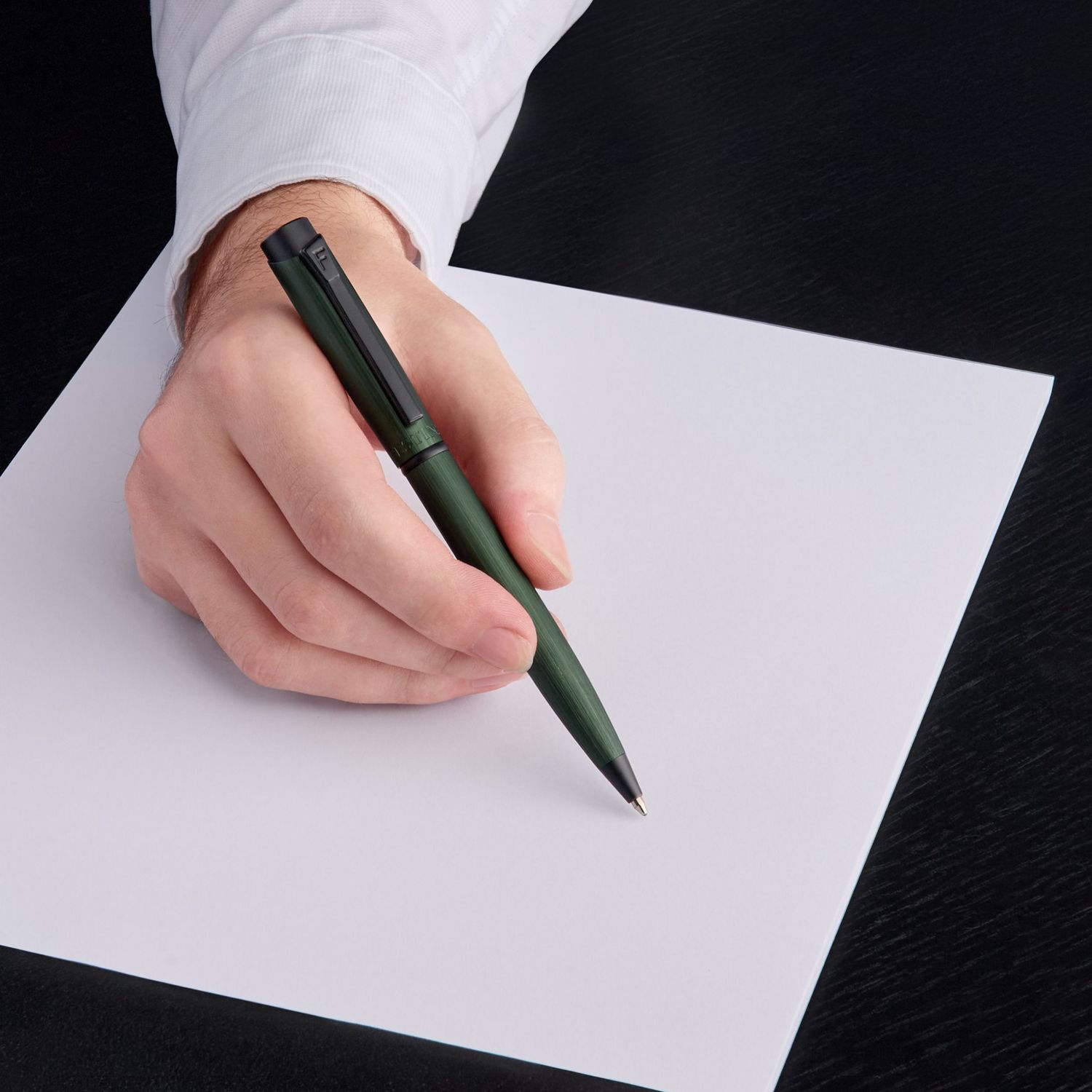 Nowy długopis „Originals” z zielonego szczotkowanego aluminium z matowymi czarnymi wykończeniami to elegancki i wszechstronny instrument piśmienny. Żywe zielone wykończenie dodaje nowoczesnego akcentu minimalistycznej oprawie, podczas gdy matowe czarne wykończenia zapewniają wyrafinowany kontrast. Starannie wykonany, posiada kultowy klip z grawerem F, charakterystyczny znak na górze i wykończenie ze szczotkowanego aluminium, które zapewnia lekki, niewymagający wysiłku wygląd. Zaprojektowany z myślą o precyzji i praktyczności, długopis ten płynnie łączy styl i funkcjonalność, dzięki czemu jest idealnym wyborem do każdego zadania związanego z pisaniem.