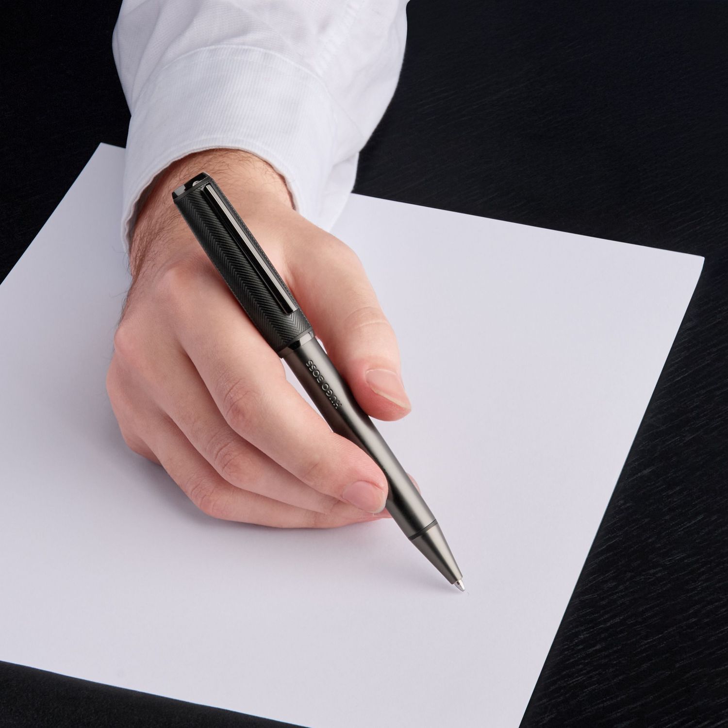 Kolekcja Pace jest wykonana na dynamicznej i harmonijnej ramie. Ten najnowszy dodatek do serii instrumentów piśmiennych charakteryzuje się eleganckim, matowym wzorem szewronu na skuwce. na skuwce, pięknie kontrastujący z czystą, pokrytą metalem dolną częścią korpusu i nieoczekiwanym umiejscowieniem logo. Jest to wyrafinowany element, który oddaje istotę subtelnego luksusu.