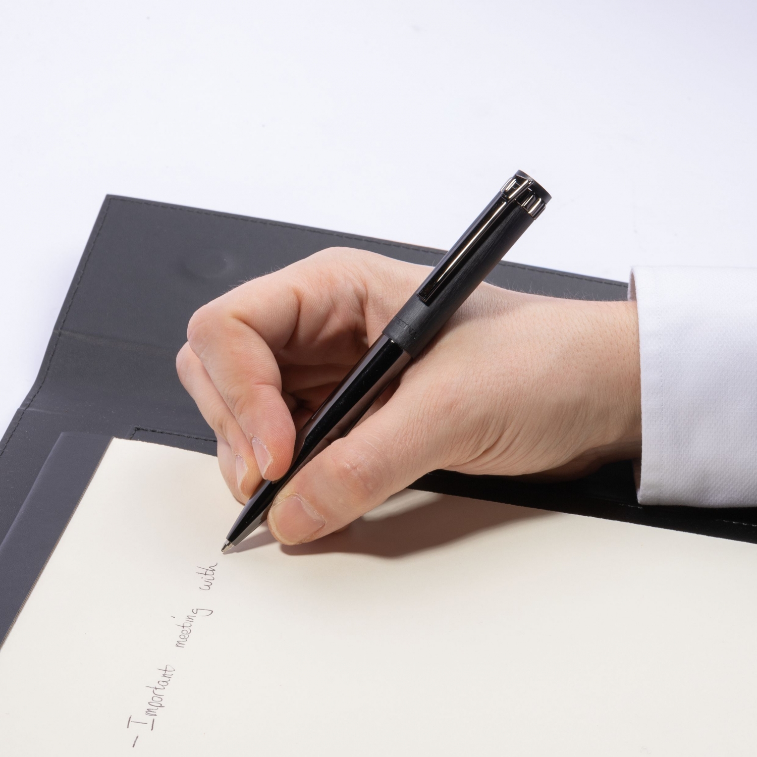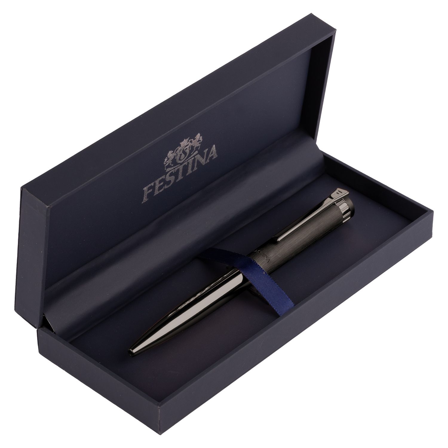 Ozdobiony analogicznymi fakturami i ornamentami odziedziczonymi po czasomierzach Festina, długopis Prestige uosabia wyrafinowaną elegancję z delikatnym zarysem i tonami: mieszanka szczotkowanej czarnej czapki i błyszczącego czarnego chromowanego korpusu oraz lamówek.