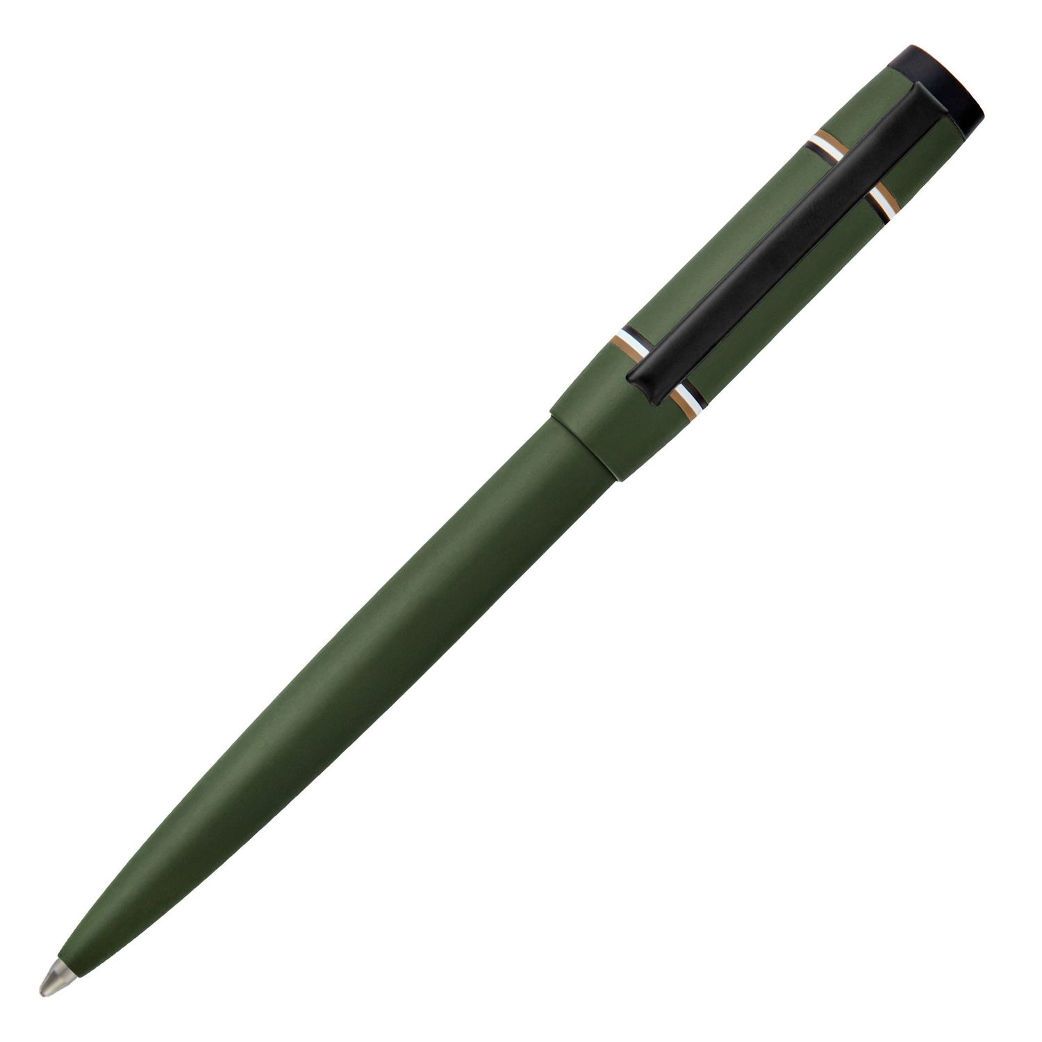The Rive varsity pen brings a fresh, spirited twist to the celebrated Rive silhouette, introducing a colorful, graphic, and playful energy. A printed Double B logo with a crisp white outline forms the central design, framed by two ultra-slim, mirroring iconic stripes. Matte black trims underscore the modern, graphical feel, while an engraved HUGO BOSS logo at the top adds refinement. Available in black, camel, navy, burgundy, and dark green, it offers a vibrant take on contemporary style.