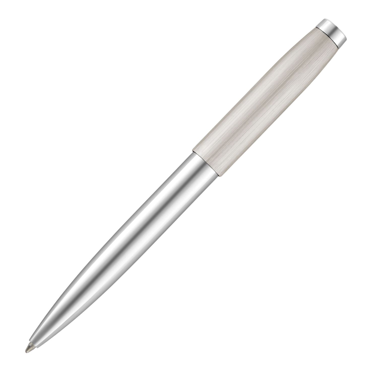 The Cerruti 1881 pen in its all-chrome tonal ballpoint version features a brushed cap engraved with the RR logo of the new branding, contrasted by a smooth, luxuriously plated lower barrel in matching chrome. The fully tonal execution creates a refined, cohesive look that highlights the purity of the materials while delivering a clean, modern writing essential with understated elegance.
