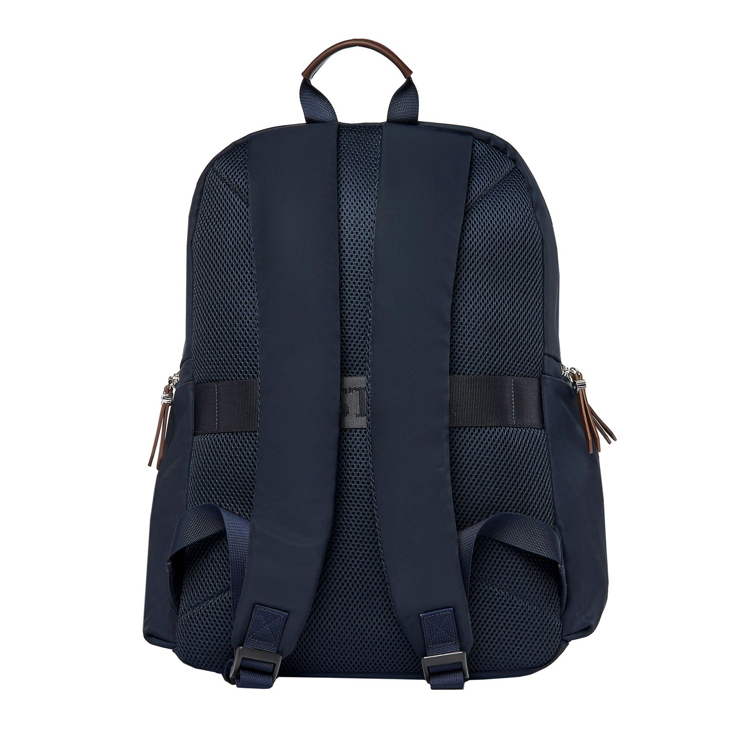 Torba „Festina” Button jest wykonana z gładkiego nylonu z teksturowanymi wykończeniami. Ponadgabarytowa płytka marynarki Button została zapożyczona z naszej tytułowej linii małych skórzanych towarów. Wyraziste chromowane akcenty i luksusowe metalowe i luksusowe metalowe detale nadają jej elegancki wygląd, jednocześnie zachowując ogólnie swobodną estetykę. Linia przycisków jest dostępna w dwóch kolorach: jedna wersja jest całkowicie czarna z emaliowaną tabliczką z podpisem, podczas gdy druga wersja łączy granatowy nylon z brązową wegańską skórą i wyrazistymi chromowanymi wykończeniami. Obie wersje charakteryzują się swobodną elegancją i są łatwe do łączenia i dopasowywania. Nasze logo Festina jest delikatnie wytłoczone na każdym produkcie, co stanowi subtelny końcowy akcent. Każdy szczegół jest delikatnie wykonany, w tym suwaki, ozdobione Festina Blazon, a także podszewka Festina z monogramem. Nasze plecaki Button zostały zaprojektowane z myślą o funkcjonalności, lekkie i kompaktowe, a jednocześnie bardzo wyrafinowane, z licznymi przegrodami zapinanymi na suwak, aby uporządkować wszystkie codzienne niezbędne rzeczy. Oprócz przedniej kieszeni i dwóch bocznych kieszeni zapinanych na zamek, wnętrze zawiera dedykowaną sekcję na laptopa. Ergonomiczny, wyściełany tył i regulowane paski zostały opracowane z myślą o doskonałym komforcie użytkowania, nawet przy przenoszeniu cięższych ładunków.