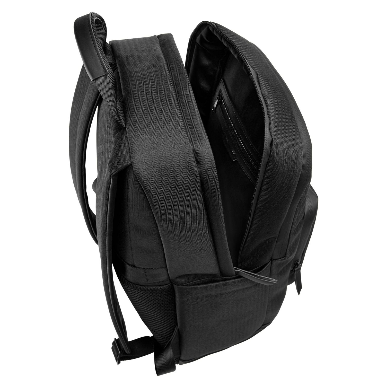 Czarny plecak Holborn to nowoczesna interpretacja elegancji. Wykonany z tkaniny inspirowanej klasycznym krawiectwem, jego wyrafinowany design jest wzmocniony czarnymi teksturowanymi akcentami, dodając głębi i wyrafinowania. Skoncentrowany na męskiej funkcjonalności, ten plecak na nowo definiuje tradycję, zachowując ponadczasowy urok. Posiada liczne kieszenie i przegrody, które idealnie sprawdzą się w codziennym użytkowaniu lub w podróży, a także dedykowaną przegrodę na laptopa w głównej części. Dopełnieniem wyrafinowanego wyglądu jest eleganckie logo w kolorze brązu.