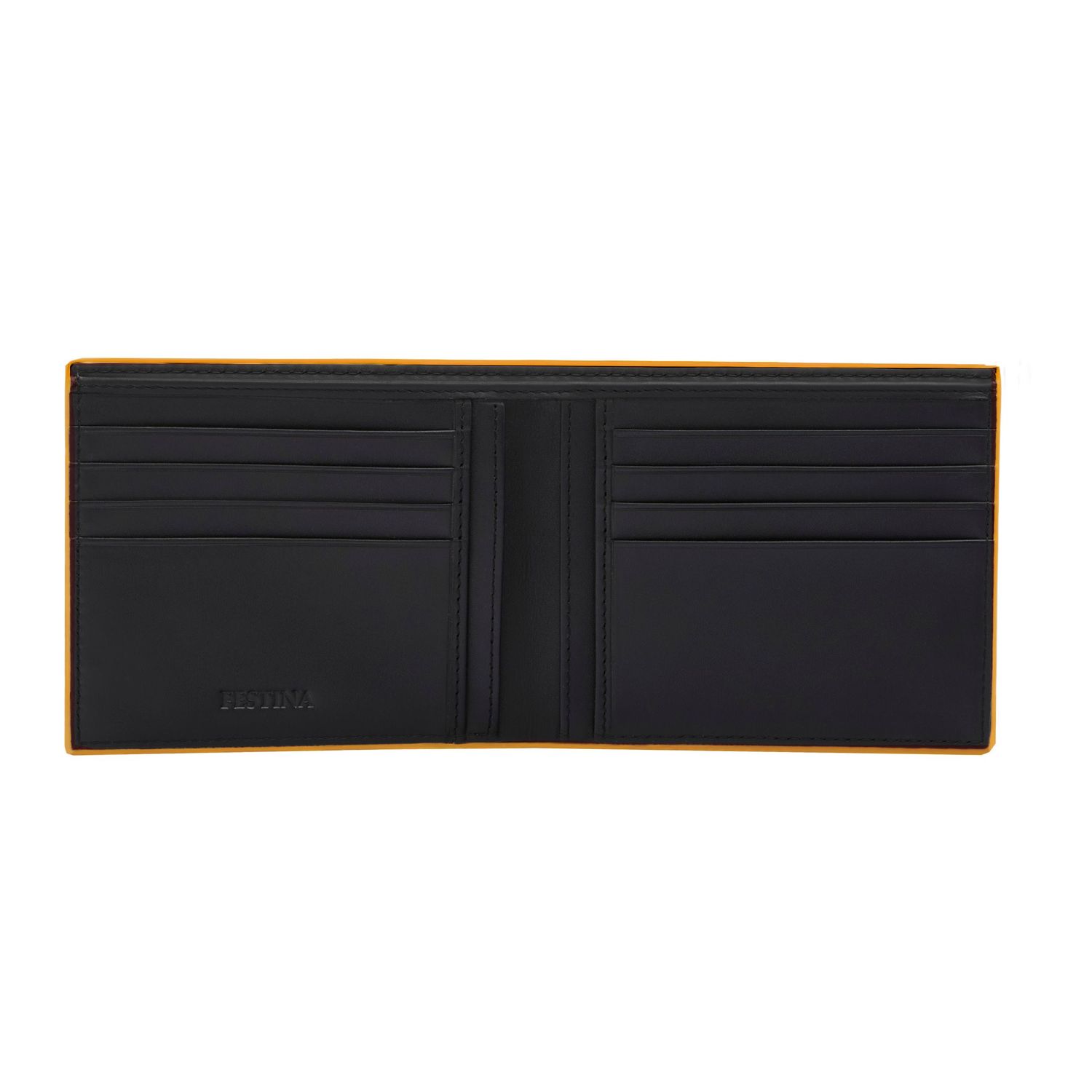 Portfel na karty Black Edition od Festina jest świadectwem ponadczasowej elegancji z odważnym akcentem. Wykonany ze starannie wyselekcjonowanych matowych czarnych skór, jest sygnowany kultową tabliczką F w tonalnym matowym czarnym wykończeniu. Konstrukcja jest wzbogacona o żywe pomarańczowe detale krawędzi, dodając dynamiczny kontrast do eleganckiej estetyki. Ten klasyczny portfel na karty posiada osiem miejsc na karty, cztery boczne przegrody i dużą przegrodę na banknoty podzieloną na dwie sekcje, oferując wyjątkową funkcjonalność i wyrafinowany styl. Prawdziwy klasyk w nowoczesnym wydaniu.