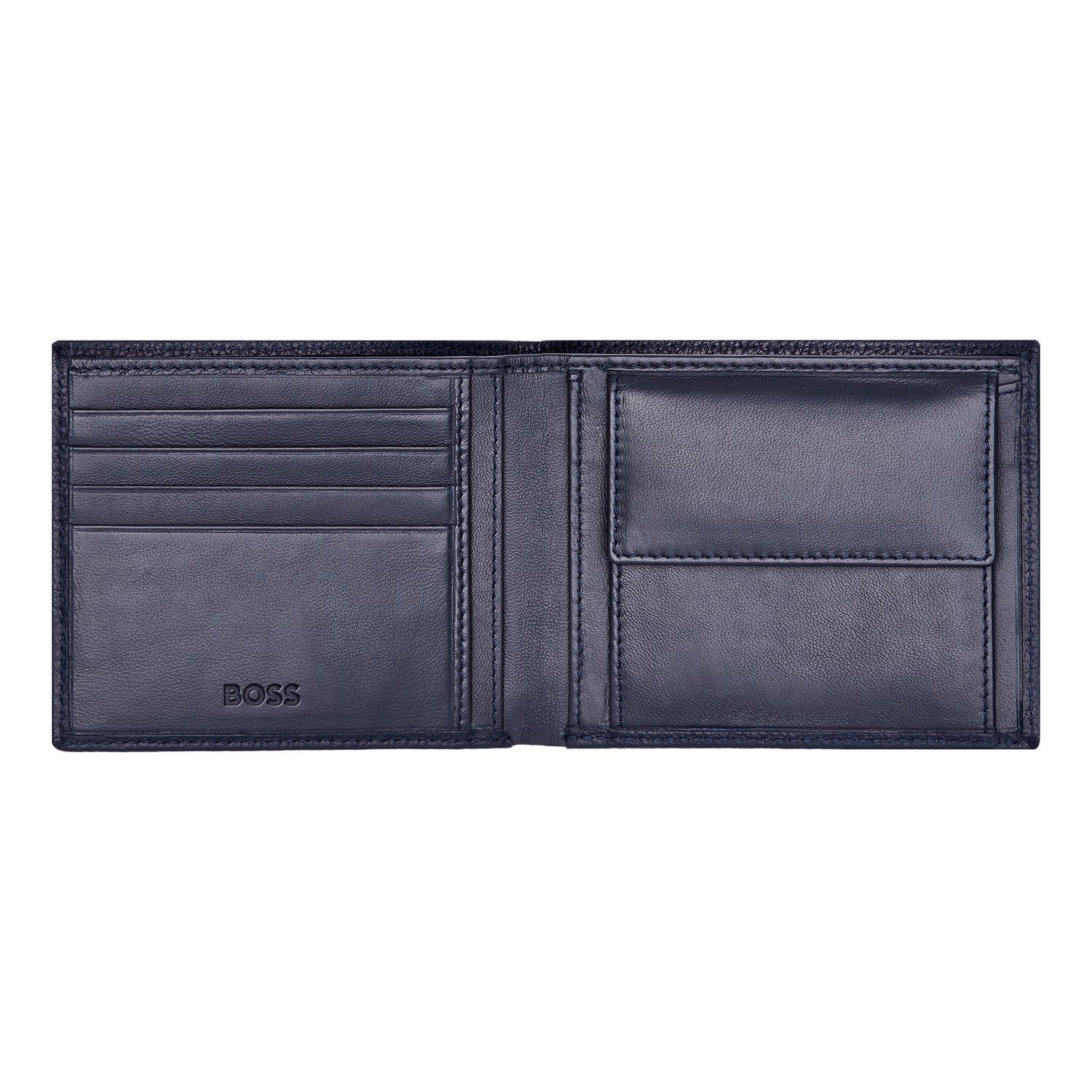 Boss Classic Grained line is characterized by carefully chosen top-grain leathers and minimalist designs. All pieces are skilfully assembled and beautifully finished with crisp chrome signature plates and monogram linings. The designs are available in black, navy and camel. This classic wallet with coin pouch includes : 2 currency compartments 4 card slots 3 side compartments 1 coin pocket
