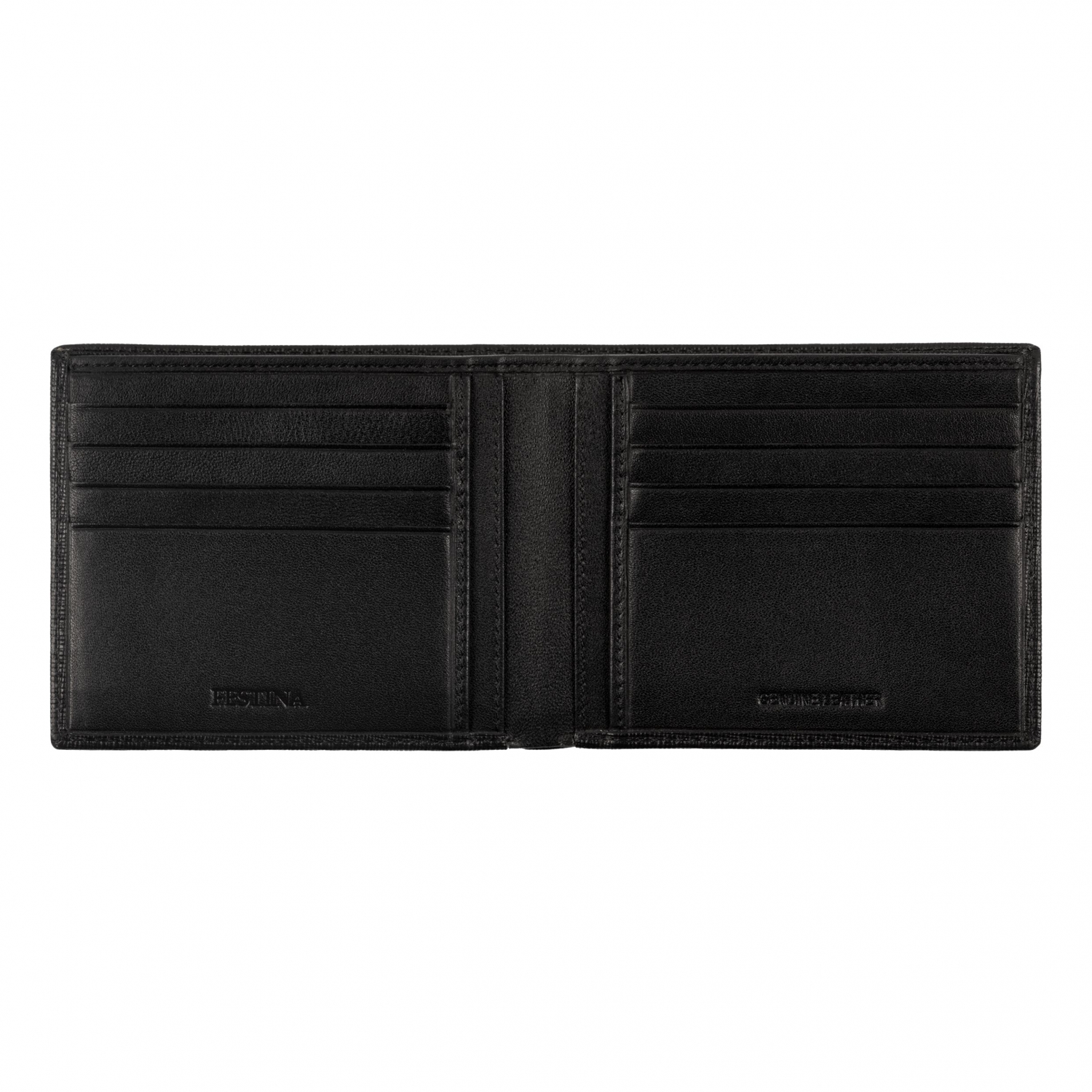 Linia małych wyrobów skórzanych „Chronobike” wykonana jest ze starannie wyselekcjonowanej skóry naturalnej o fakturze saffiano. Ta czarna wersja jest ozdobiona ikonicznym podpisem logo F w kształcie trapezu, w kolorze chromu. Podkreśla go wytłoczona w skórze nazwa Festina. Ten portfel na karty o minimalistycznym wyglądzie jest kompaktowy i bardzo praktyczny, posiada łącznie 12 miejsc na karty i oddzielną, dwuczęściową przegródkę na banknoty.