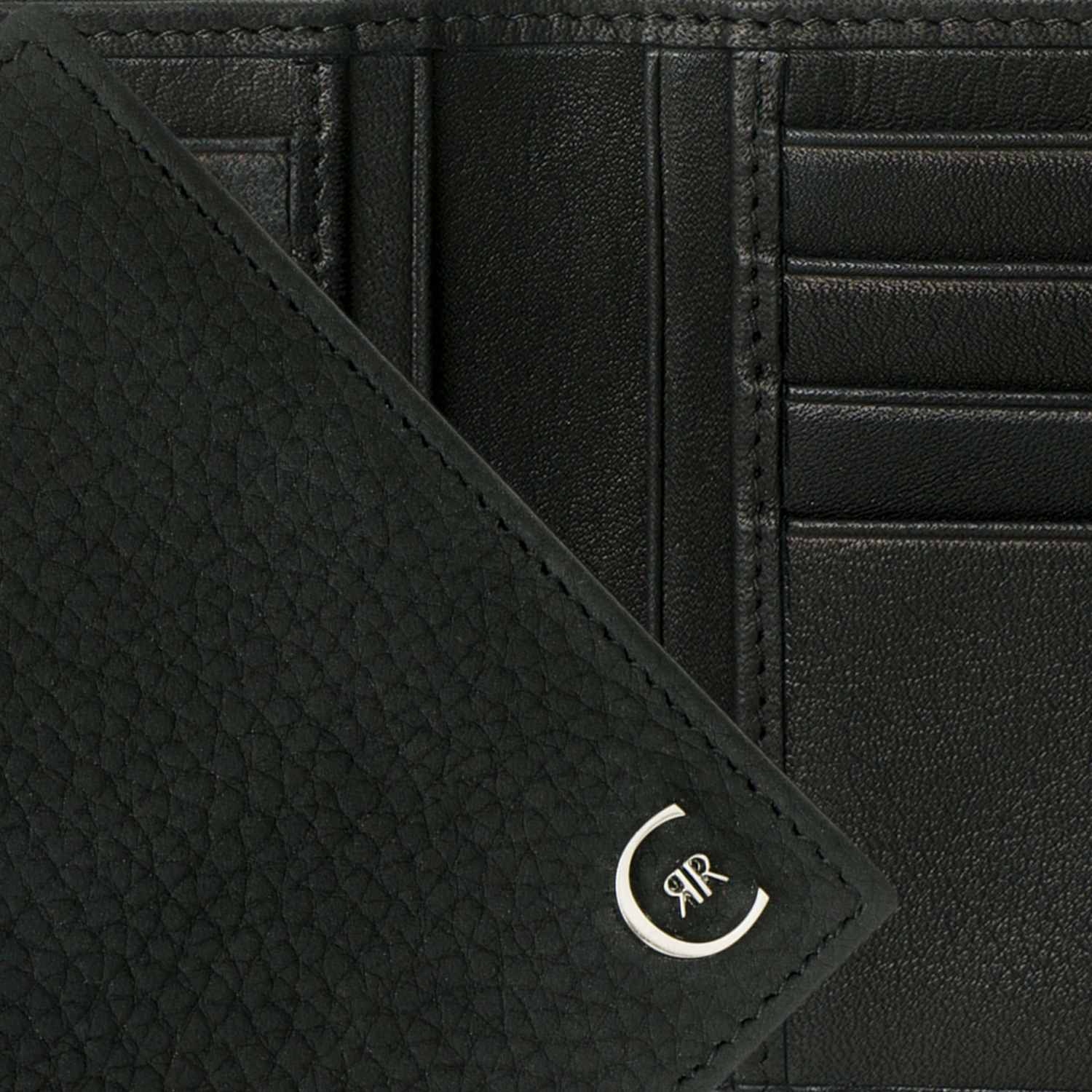 Portfel pieniężny Cerruti „Hamilton” jest wykonany z najwyższej jakości czarnej skóry ziarnistej. Skóra ma matowe wykończenie, co nadaje jej bardzo nowoczesny wygląd. Logo CRR jest chromowane, aby uzyskać modny i klasyczny wygląd. Element ten posiada 4 gniazda kart po każdej stronie i kompresję notatek, co pozwala na wyrafinowaną organizację. Ten element można łatwo dopasować do wszystkich innych czarnych elementów „Hamilton”, tworząc liczne zestawy upominkowe.