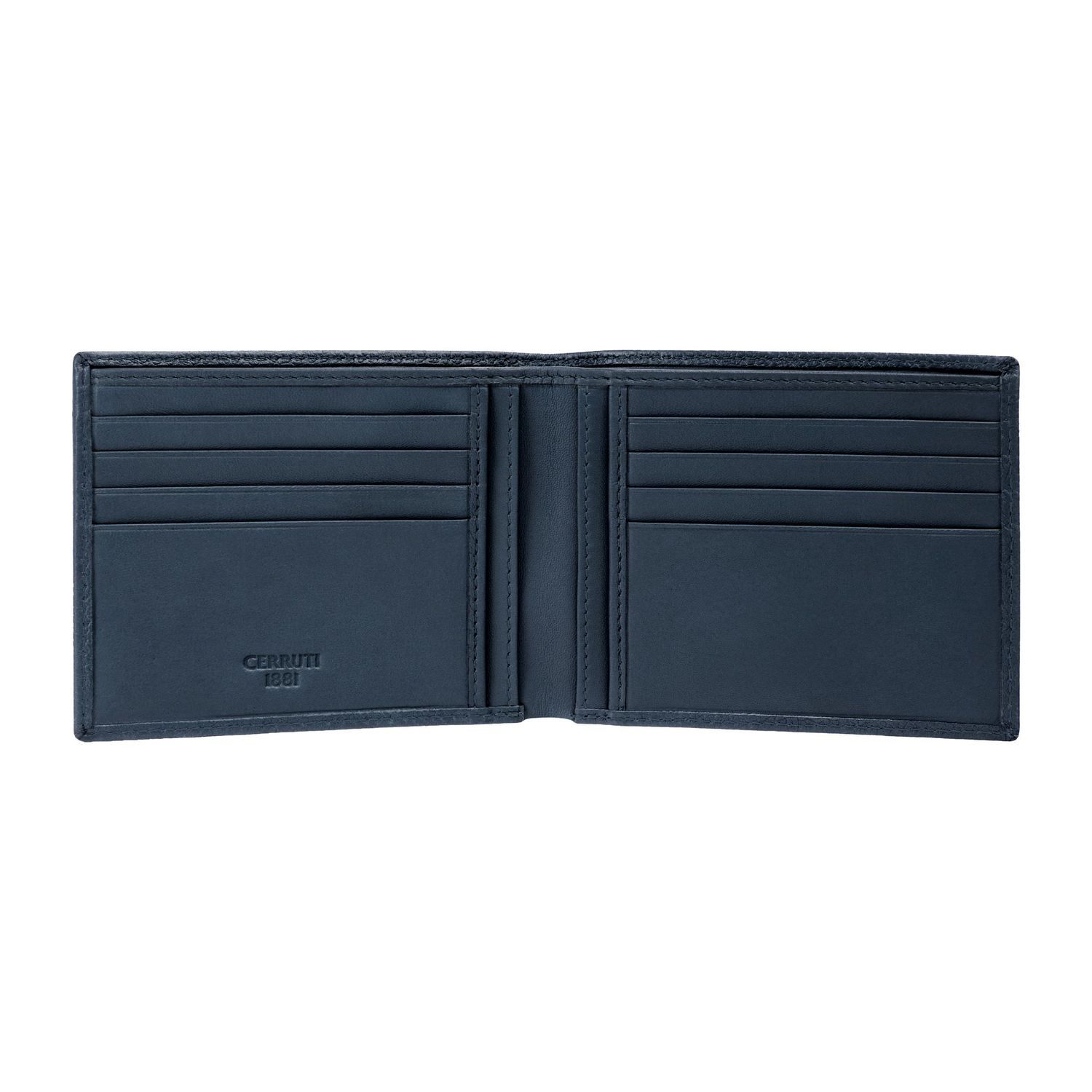 The CERRUTI 1881 Jefferson classical wallet features eight card slots, four vertical compartments, and a main note compartment, making it a perfectly organised and timeless essential. Made from carefully chosen grained leather of exceptional quality, it offers a beautifully refined feel paired with practical, everyday functionality. The miniature double R signature adds an elegant, discreet highlight, while the gunmetal finish on the chic navy blue version creates a subtle contrast that reinforces its contemporary sophistication.