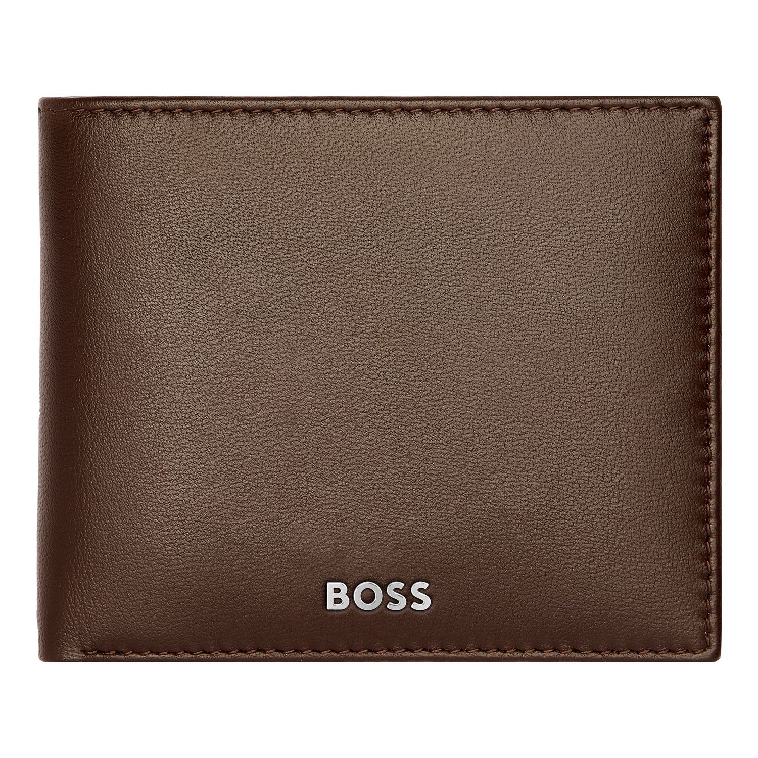 The Boss Classic Smooth line is Boss ultimate minimalist, timeless small leather goods offering, characterized by carefully chosen leathers and understated aesthetics. All pieces are masterfully crafted and signed with crisp chrome Brand plates, along with monogram linings. The designs are available in black and brown. This classic wallet with coin pouch includes : 2 currency compartments 4 card slots 3 side compartments 1 coin pocket