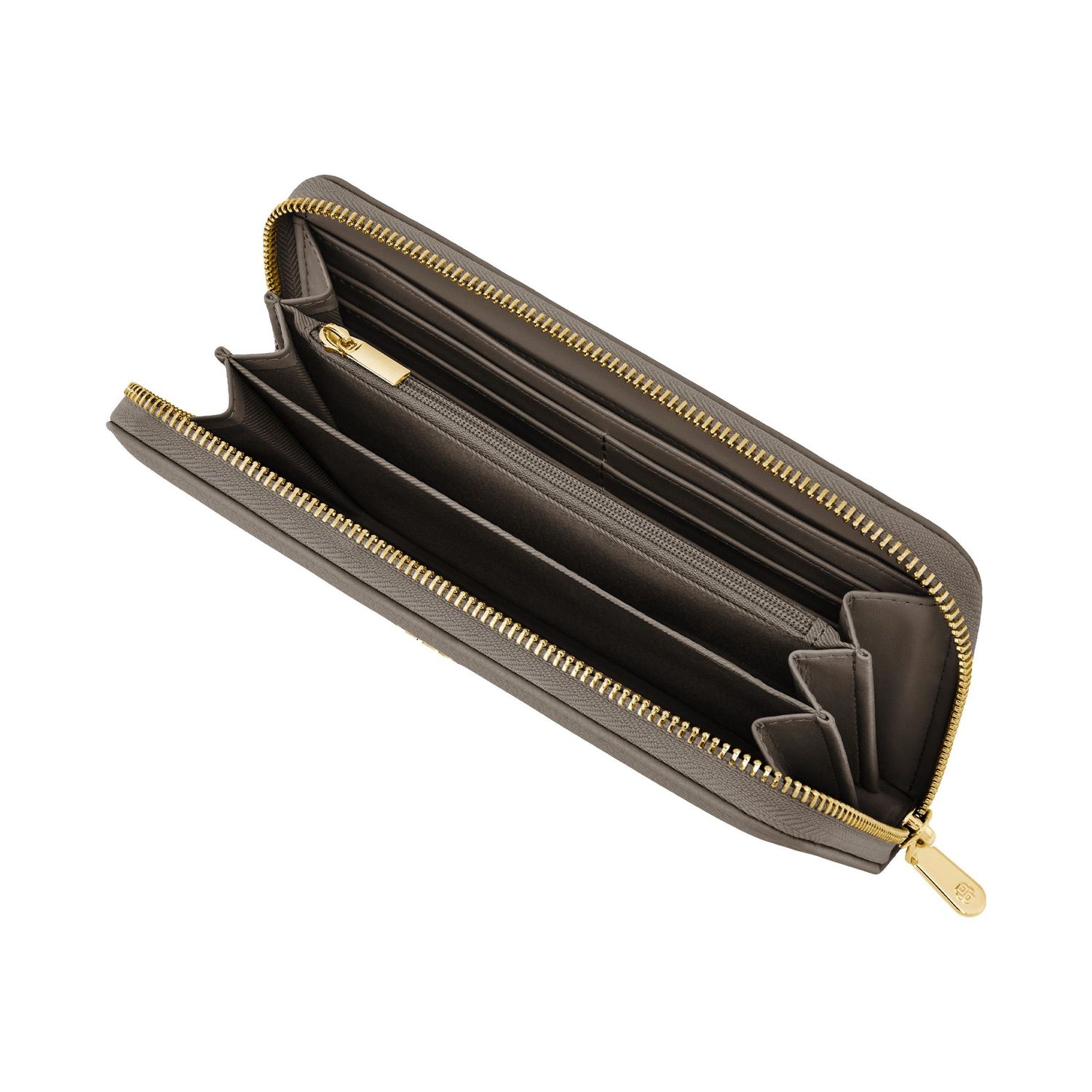 This classic zipped wallet is crafted from carefully selected grained matte PU with a soft, refined hand feel. The design is highlighted by a BOSS logo signature plate on the front and complemented by newly developed light gold–plated zippers featuring a Double B detail. Designed for everyday organization, it offers twelve card slots with six on each side, two note compartments positioned on either side, and a central zipped compartment for secure storage. Finished entirely with light gold trims for an elevated and luxurious touch, the wallet is available in a soft color palette including black, burgundy, taupe, nude, and lilac.