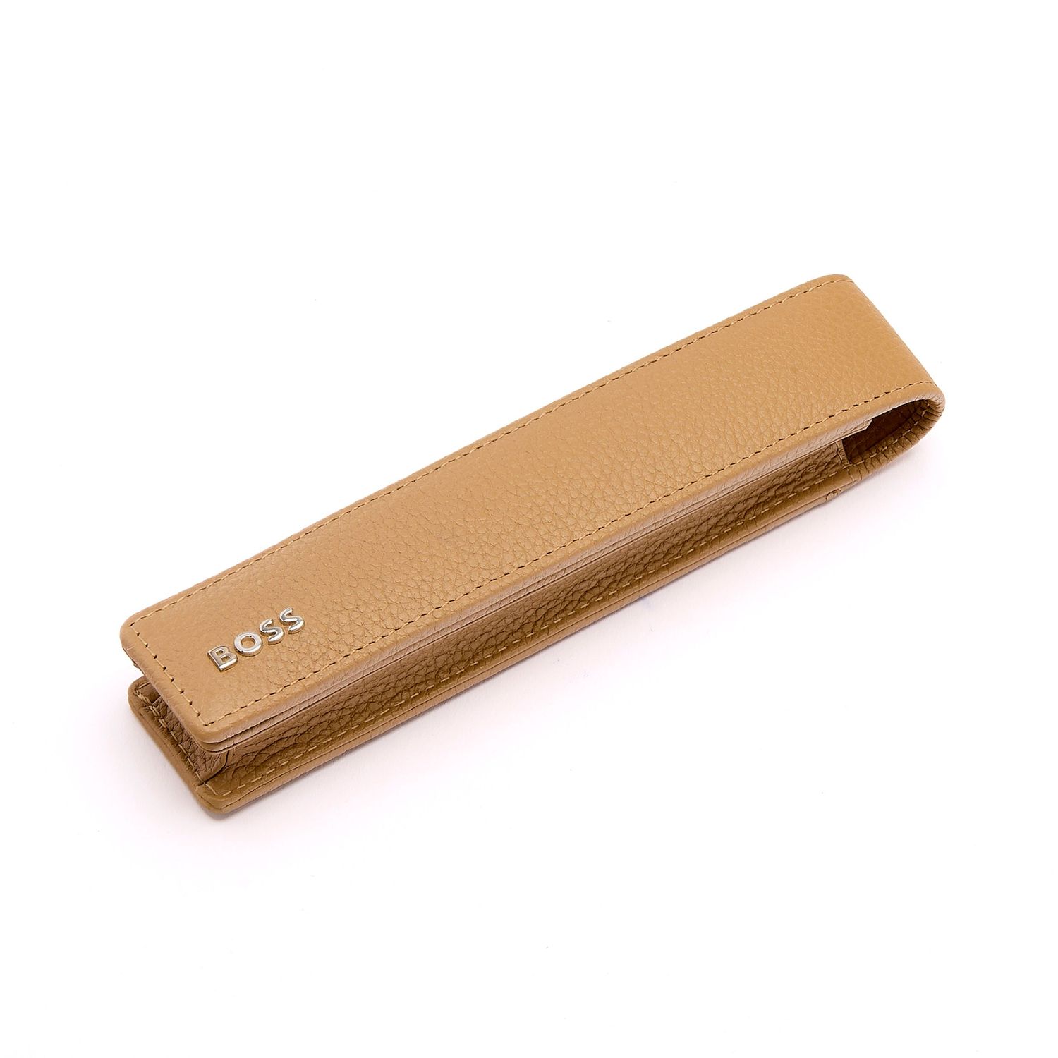 Hugo Boss Single Pen Pouch in Classic Grained Camel—a perfect fusion of elegance and functionality for the modern professional. Crafted from premium materials, this exquisite pen case embodies the sophistication and quality synonymous with the Hugo Boss brand. Its sleek dimensions of 165 x 35 x 20 mm make it the perfect companion for your favorite writing instrument, ensuring both protection and style. It features a tone on tone monogrammed lining.
