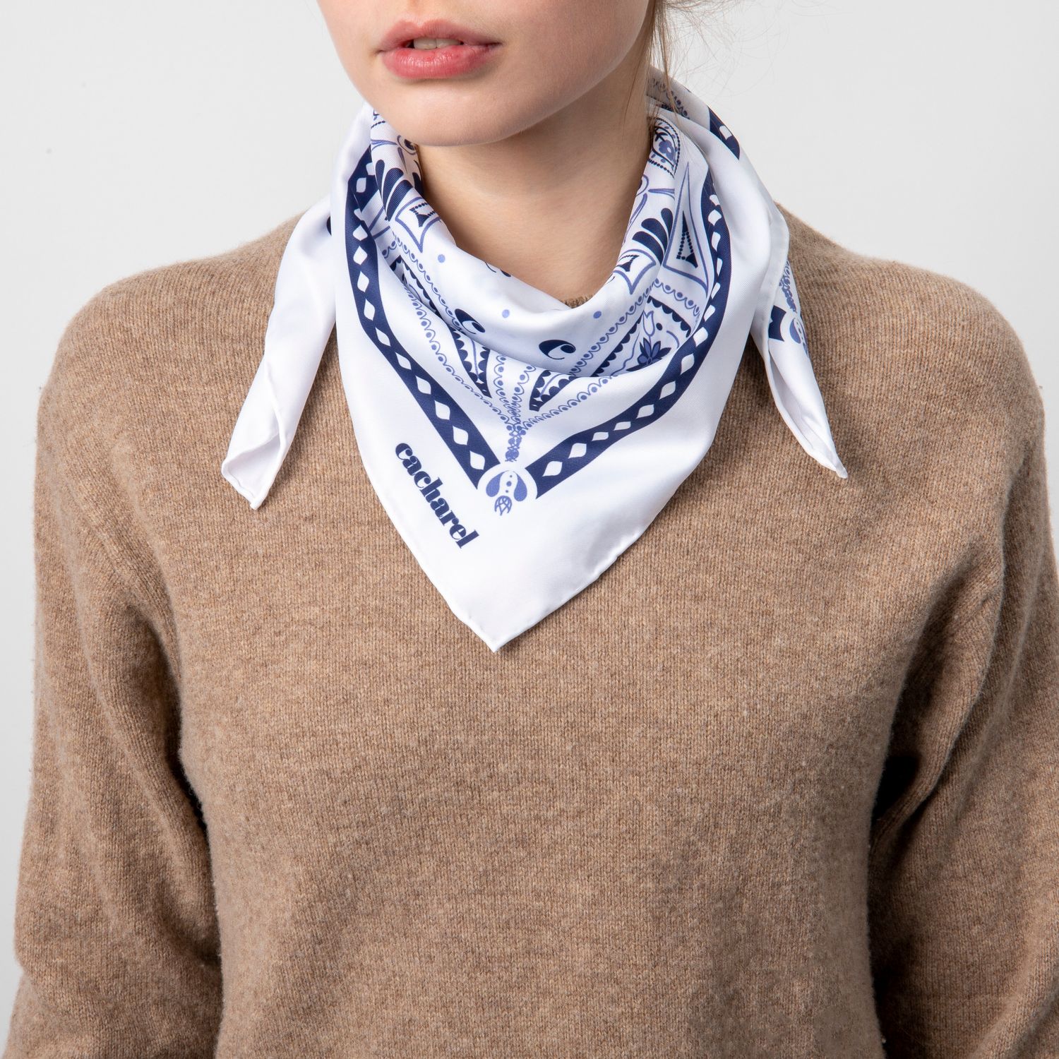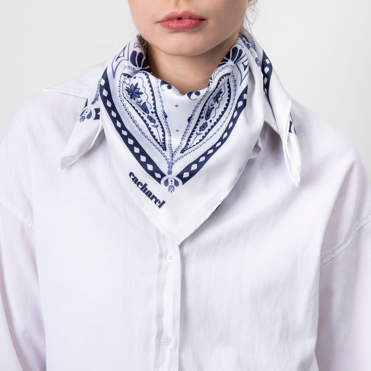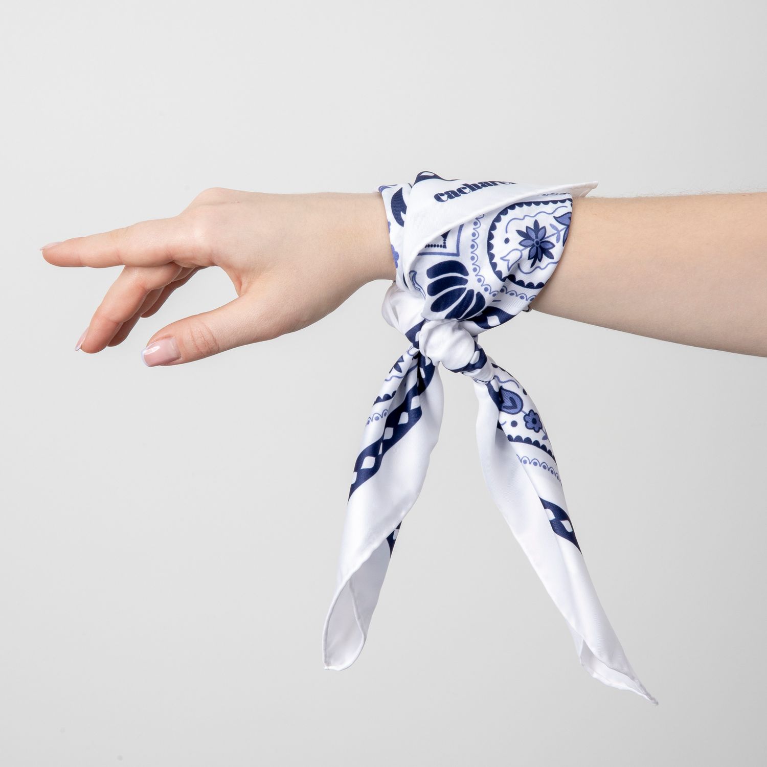 Szalik „Alesia” zdobi nadruk inspirowany motywem paisley. W tym stylu chcieliśmy zagrać z graficznymi nadrukami i kolorami pop, aby nadać mu prawdziwie współczesny charakter. Ten szalik jest wykonany z wegańskiego jedwabiu (poliester twill). Jego rozmiar 65X65 cm sprawia, że jest to bardzo uniwersalny dodatek, który można nosić na setki różnych sposobów.