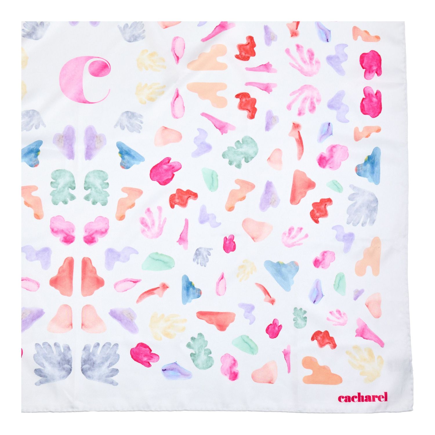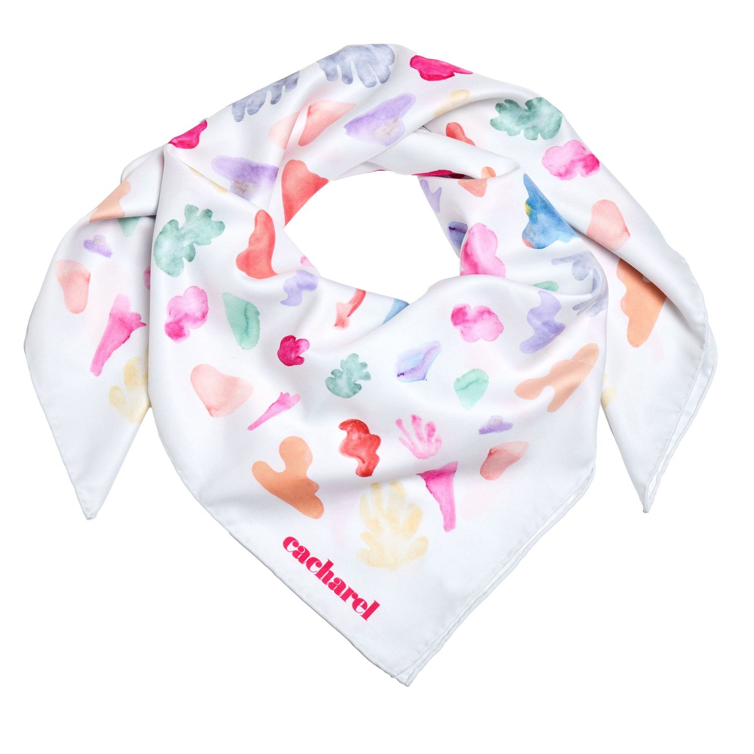 Szalik „Apolline” w kolorze złamanej bieli prezentuje miękkie, kolorowe odcienie i organiczne kształty inspirowane płynnymi formami natury. Jego akwarelowy wzór dodaje orzeźwiającego i żywego akcentu do każdego stroju. Wykonana z wegańskiego jedwabiu (poliester twill) apaszka ma wymiary 90 x 90 cm, oferując wszechstronność stylizacji na wiele sposobów.