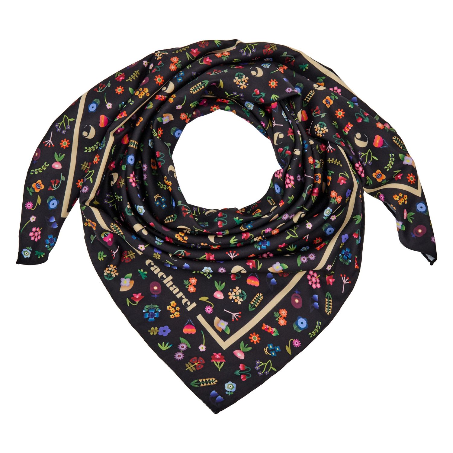 The Seraphine scarf is a playful, graphical reinterpretation of a Liberty-inspired print—an aesthetic closely tied to the Cacharel brand DNA—brought to life through vibrant, colorful elements that add a spirited touch while remaining effortlessly easy to match. Available in black, white, and bright blue, it drapes with lightness and offers a fresh, expressive accent that naturally complements a wide range of looks.