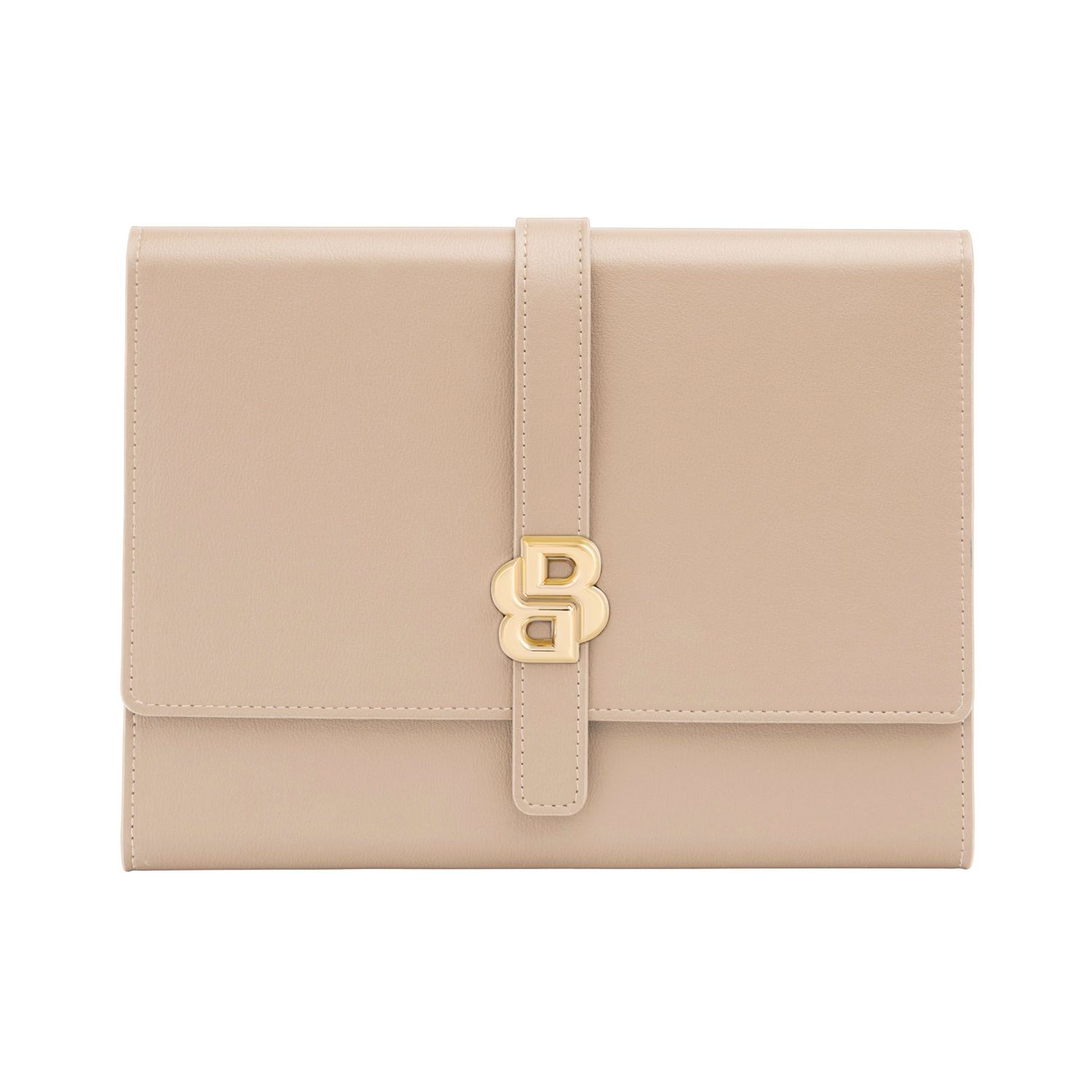 Teczka A5 od BOSS łączy w sobie delikatny kolor nude z jasnymi, pozłacanymi akcentami, zapewniając kobiecy i elegancki wygląd. Ponadgabarytowa klamra zamykająca Double B w kolorze złotym dodaje luksusowego charakteru, a miękka tekstura PU zapewnia wyrafinowane wykończenie. Ciepłe, neutralne odcienie nude są pięknie uzupełnione złotymi detalami, dzięki czemu idealnie pasują do kobiecego długopisu Arche Double B i breloka do kluczy, tworząc atrakcyjny zestaw upominkowy.