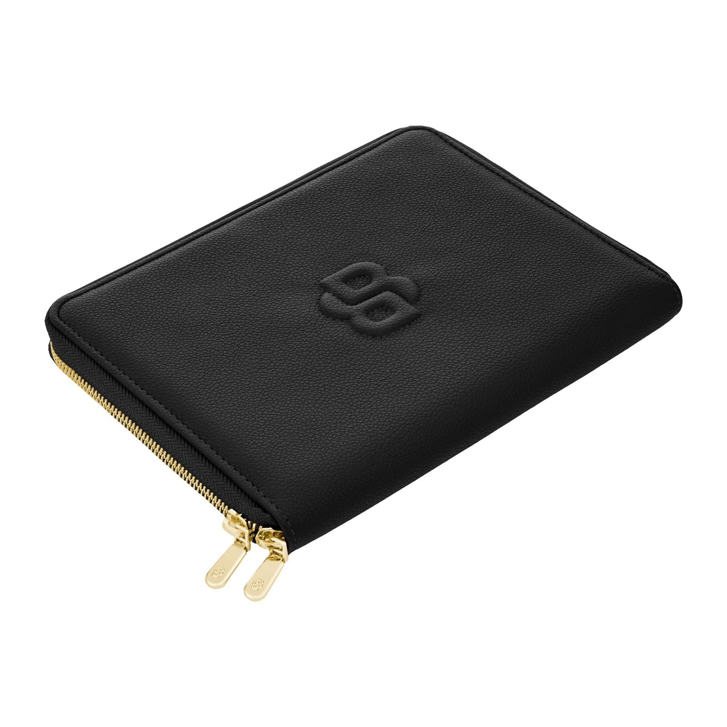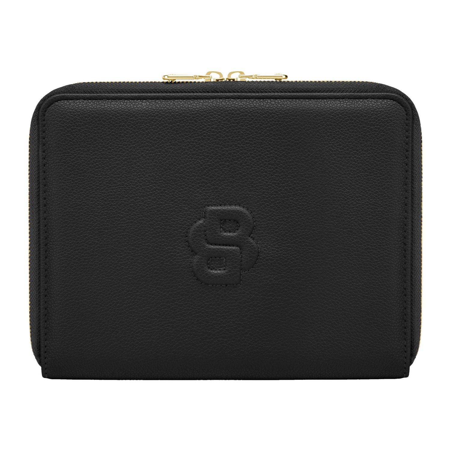 This signature lady folder in black is defined by a big yet minimal three dimensional Double B logo, placed as a central statement. The raised logo element brings a refined, luxurious touch while maintaining a clean and confident silhouette. Crafted from carefully chosen grained matte PU, the texture enhances depth and elegance. Soft gold accents echo the rest of the line, including newly developed Double B zipper pullers that introduce a subtle, jewelry-like finish. The contrast between deep black and warm gold creates a timeless and sophisticated expression.