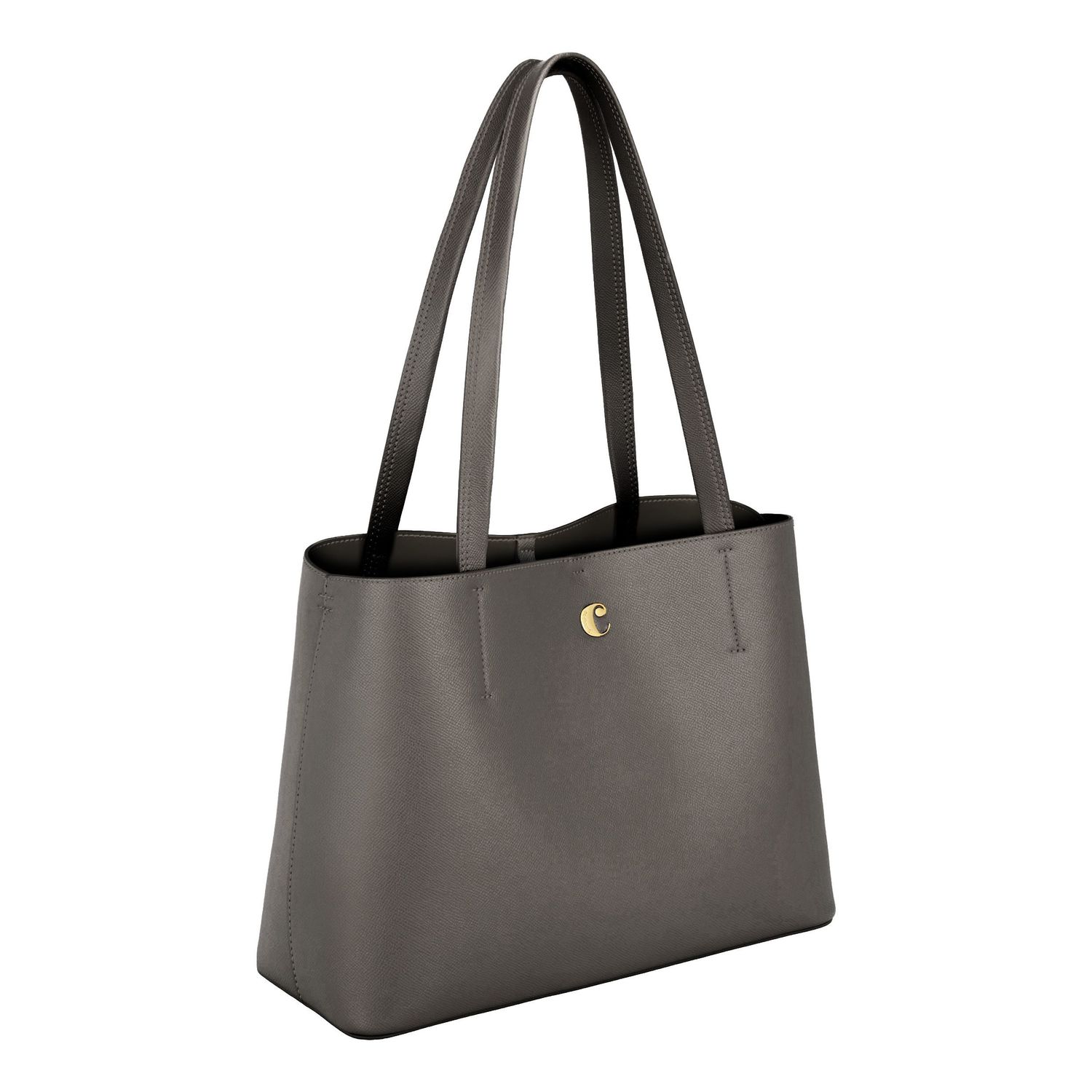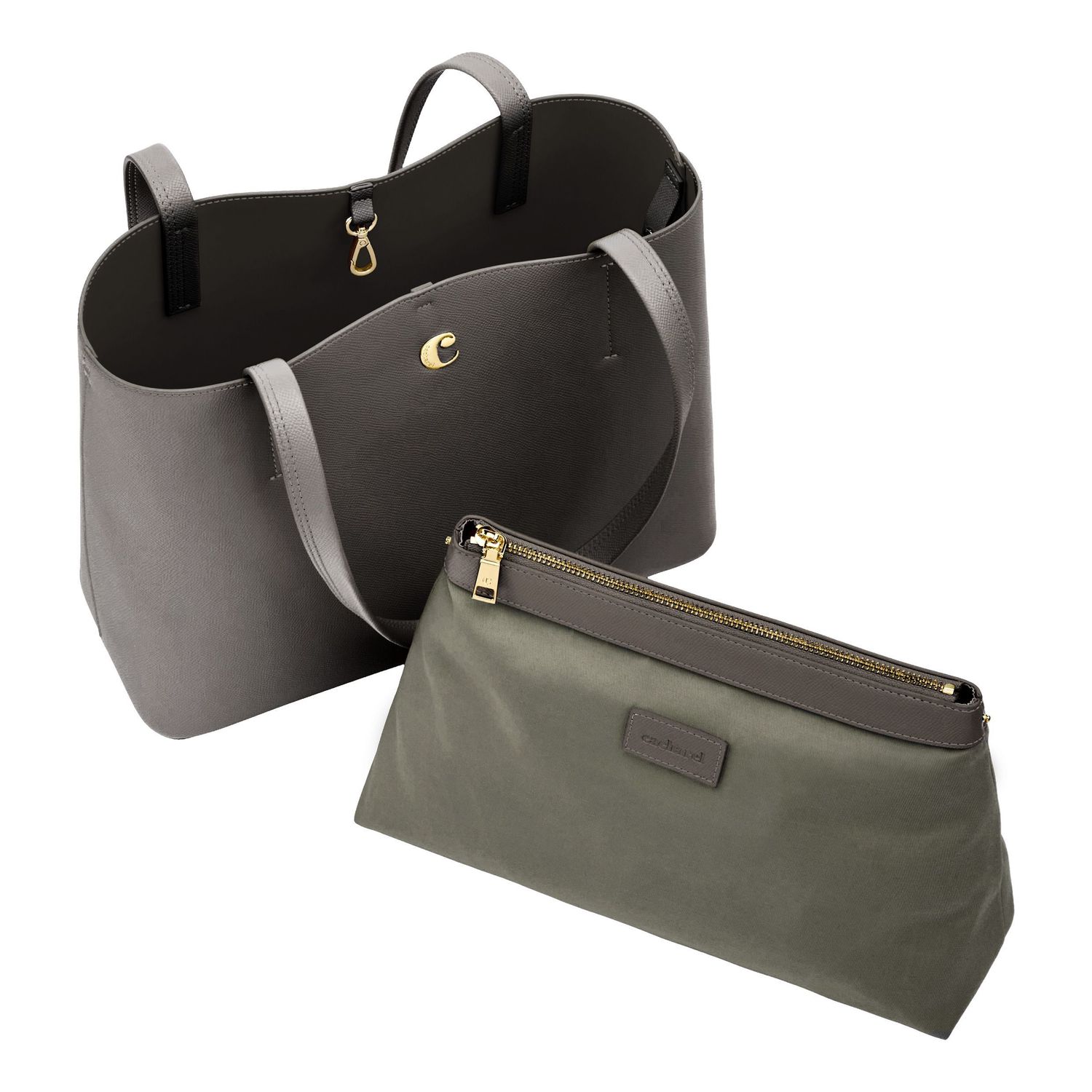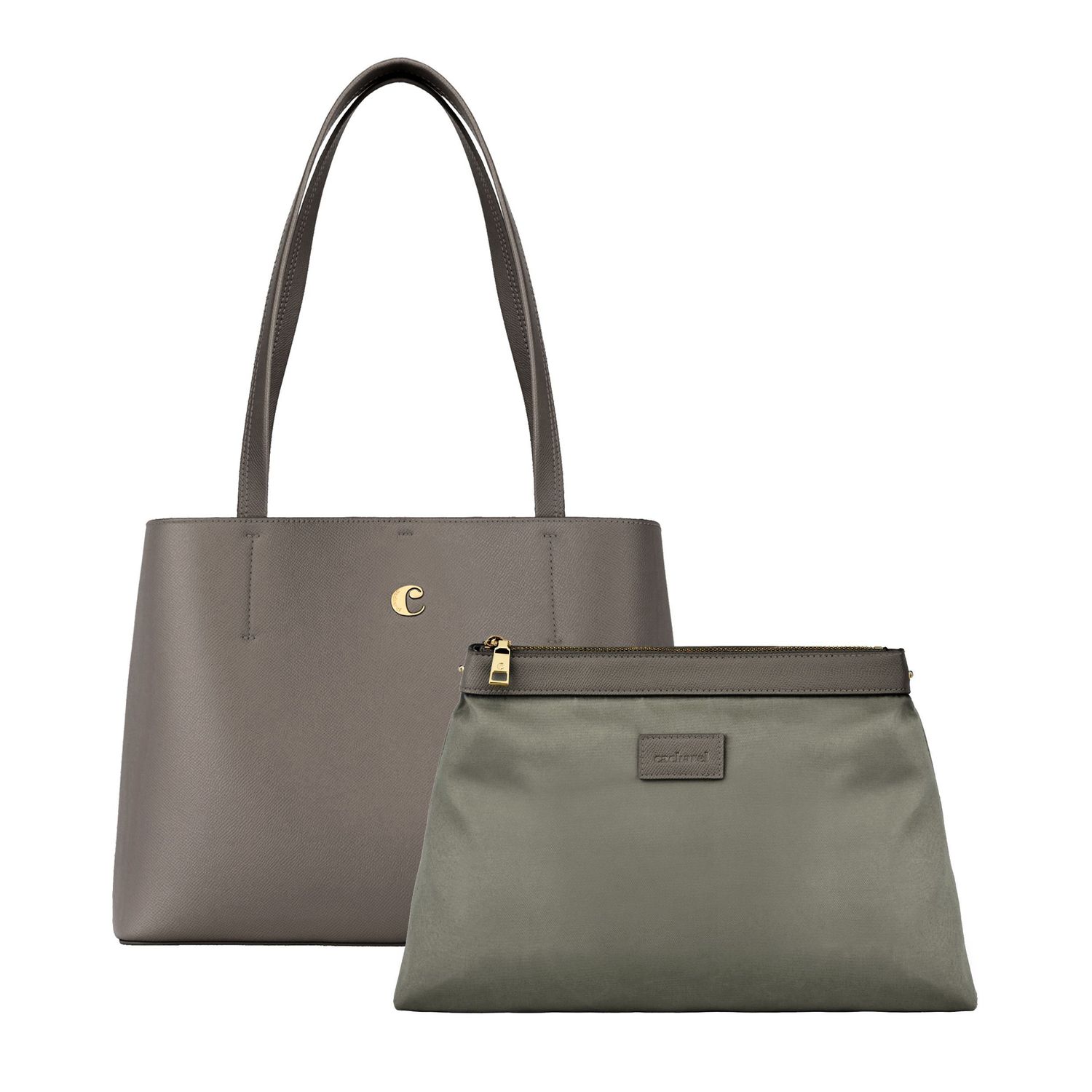 The Seraphine tote bag is a highly functional yet feminine piece, crafted from beautiful saffiano-textured vegan leather (PU) and offered in a playful palette of colors. It is signed with an oversized gold-toned C plate, adding a distinctive Cacharel touch. Designed as a 2-in-1 accessory, its spacious interior includes a large detachable pouch that can be used separately as a travel organizer. The tote closes with an elegant hook-and-ring system, bringing a subtle and unexpected twist to its design. Lightweight, easy to wear, and effortlessly versatile, it complements any outfit. Available in black, navy, taupe, yellow, and light grey.