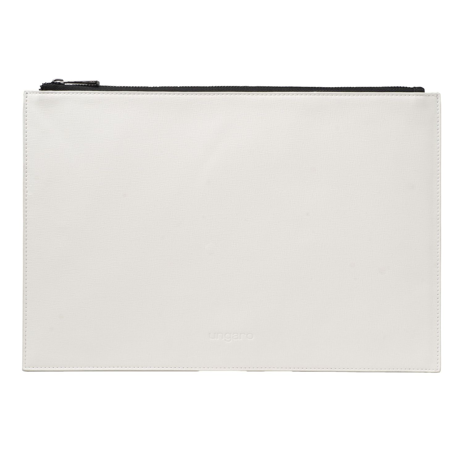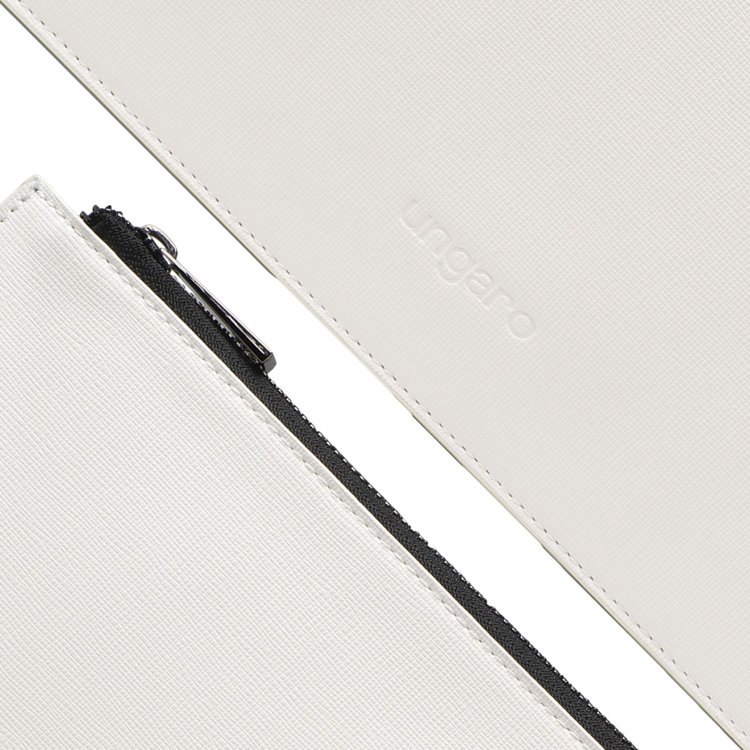 Wykonana z starannie dobranego białego materiału o fakturze szafranu i wykończona drobnymi detalami z brązu, sakiewka Cosmo firmy Ungaro jest praktycznym dodatkiem do przenoszenia Twoich rzeczy. Czarny zamek błyskawiczny nadaje modnego charakteru.