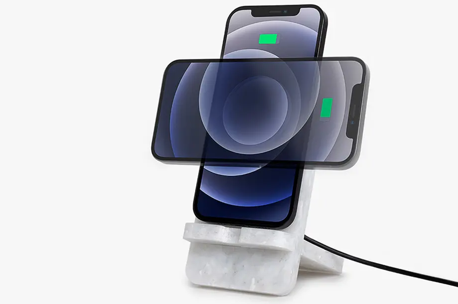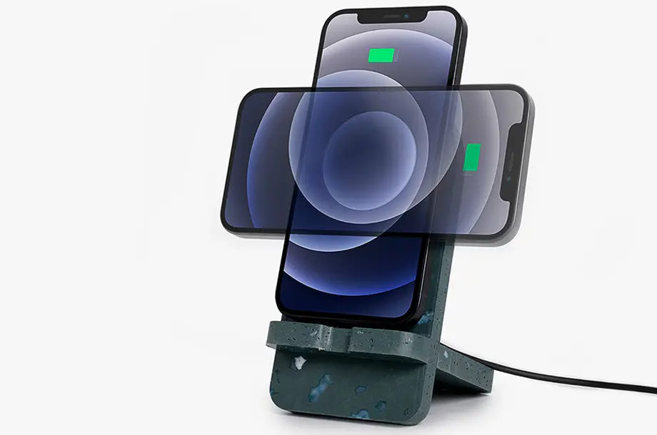 Waste Snap Dock to 15-watowa bezprzewodowa szybka ładowarka wykonana z przetworzonych odpadów plastikowych. Może ładować dowolny telefon obsługujący ładowanie bezprzewodowe. Jeśli masz iPhone’a 12, ładowarka magnetyczna zatrzaskuje się na magnesach w iPhonie 12, zapewniając optymalne ładowanie.