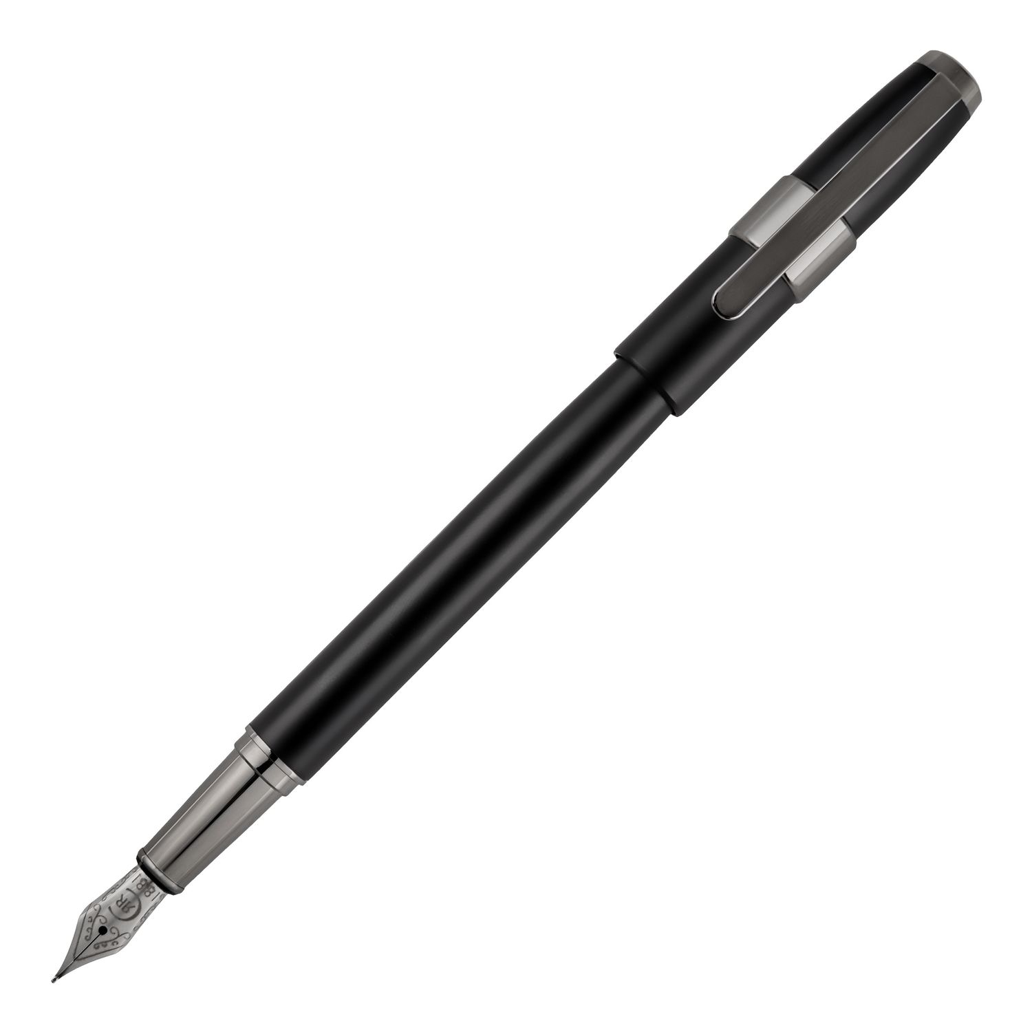 Pióra Block są minimalne, proste i luksusowe, z ich pierścieniem z logo 3D umieszczonym na skuwce. Wersje z matowym lakierem mają minimalny i nowoczesny charakter. To pióro wieczne miesza Czarne matowe lakiery z akcentami pistoletowymi.