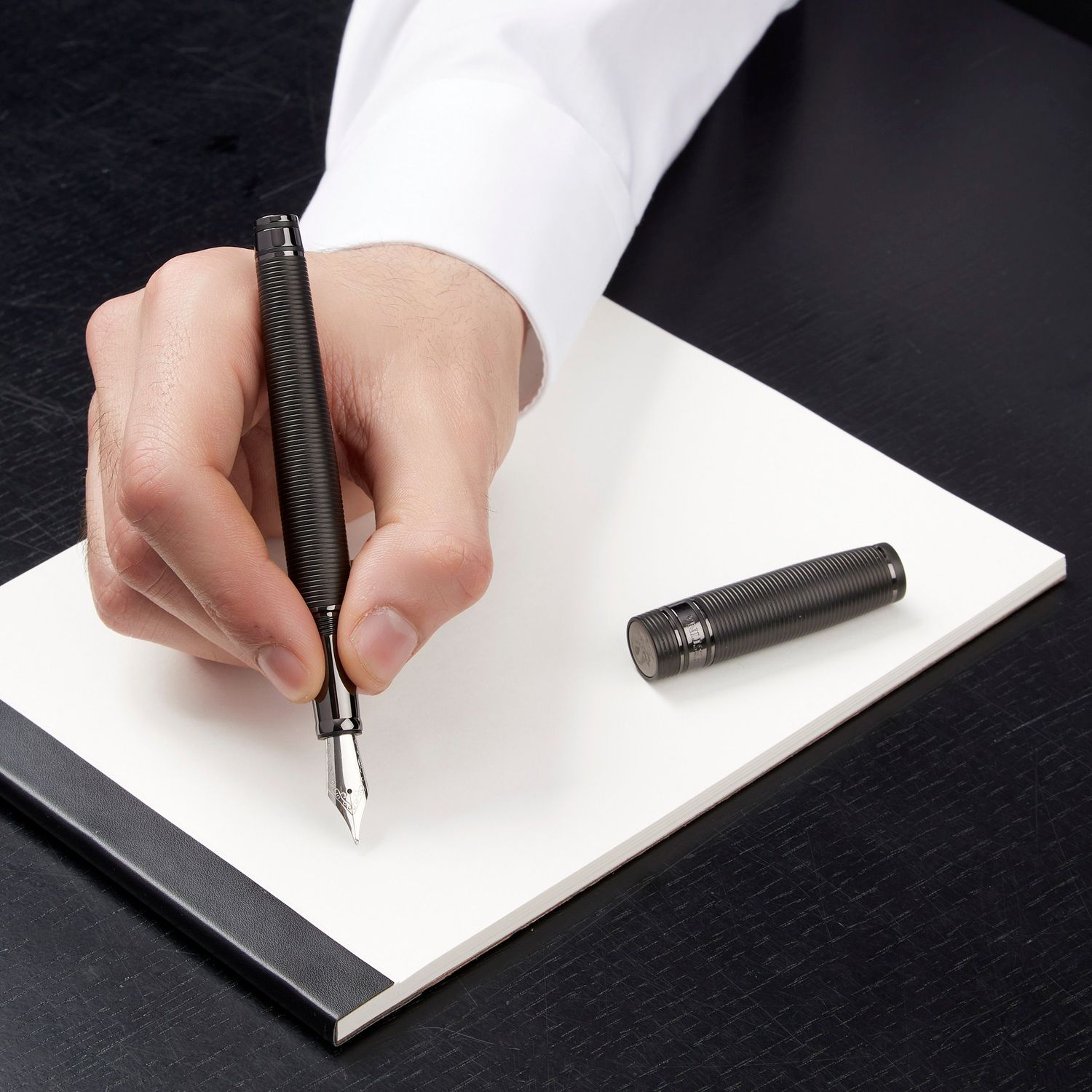 Nieco bardziej nieoczekiwana i wyrafinowana wersja naszej nowej kolekcji artykułów piśmiennych „Bold”, ten artykuł piśmienny jest w całości wygrawerowany w poziome paski. Ta część asortymentu jest deklaracją stylu i elegancji sama w sobie i jest oferowana w 3 luksusowych kolorach powłoki metalowej: czarnym, pistoletowym i chromowanym Luksusowym. Gra z kontrastującymi kolorami, wykończeniami i wyrafinowanymi detalami jest kluczem do naszego procesu projektowania. Każdy element subtelnie uzupełnia inny, dając efekt, który jest zarówno elegancki, jak i niewymuszony.
