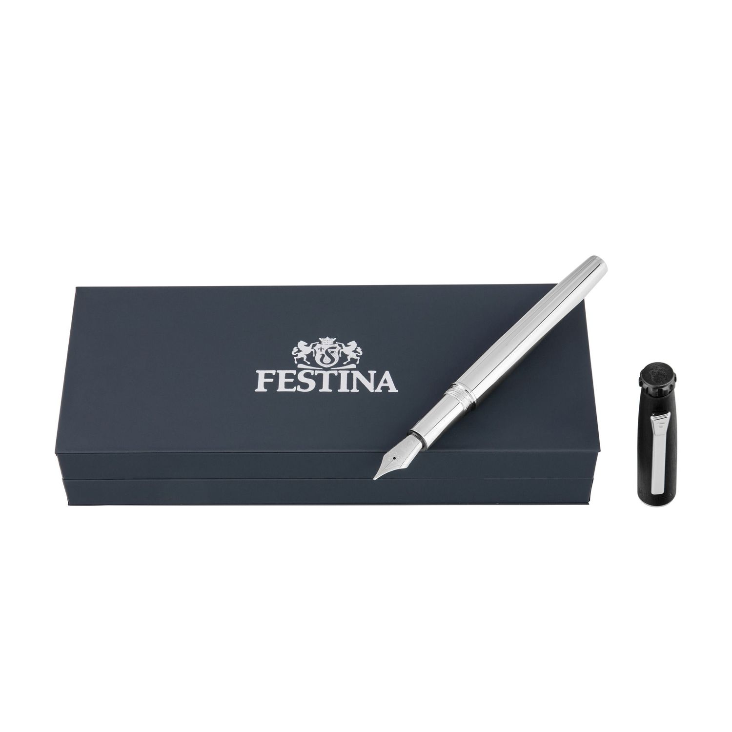 Pióro wieczne Chronobike z czarną, szczotkowaną skuwką i chromowanym korpusem uosabia esencję nowoczesności i aerodynamiki kolekcji. Jego smukły, owalny kształt przywołuje na myśl ruch i elegancję, a chromowane akcenty podkreślają jego wyrafinowany design. Charakterystyczne detale, takie jak górna część inspirowana przyciskiem zatrzymania zegarka Chronobike i odważny Festina Blason, podkreślają jego charakterystyczny kunszt. Uzupełnione o charakterystyczny dla linii klips, to pióro płynnie łączy styl i funkcjonalność, pokazując zaangażowanie Festiny w precyzję i skrupulatną dbałość o szczegóły.