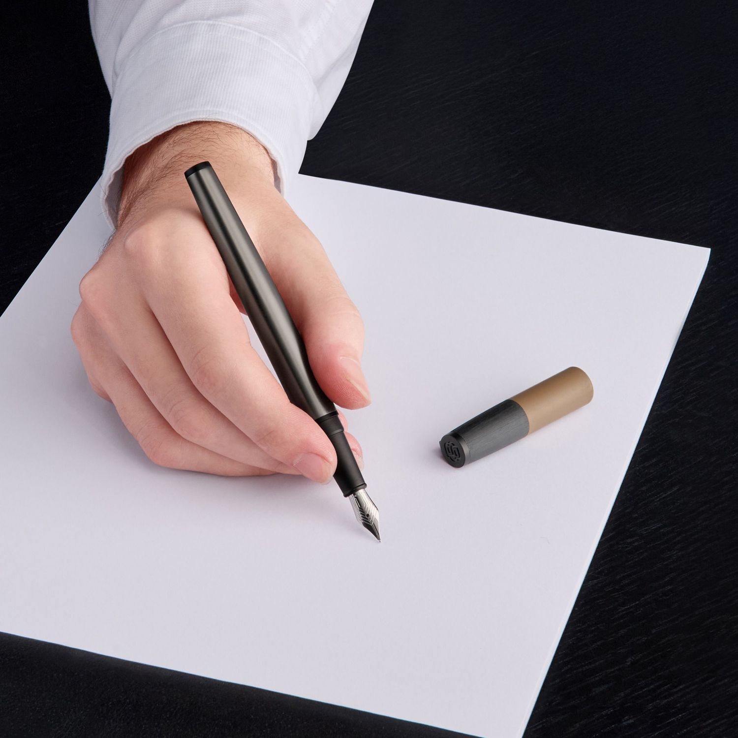 Nasza rodzina Gear to nasza najbardziej kultowa kolekcja instrumentów piśmiennych. W tym sezonie powraca w naprawdę nieoczekiwany sposób: trzy instrumenty piśmienne – długopis, pióro wieczne i rollerball – są mieszane i dopasowywane, a każdy z nich ma trzy różne tekstury: głęboką szczotkowaną czerń, elegancki matowy brąz i gumowany lakier w kultowym camelu. Proporcje każdego elementu harmonizują ze sobą, tworząc prostą, ale naprawdę nieoczekiwaną edycję tej ulubionej na rynku sylwetki. Wygrawerowane logo z podwójnym B na górze nadaje tym elementom idealny, spójny akcent końcowy.