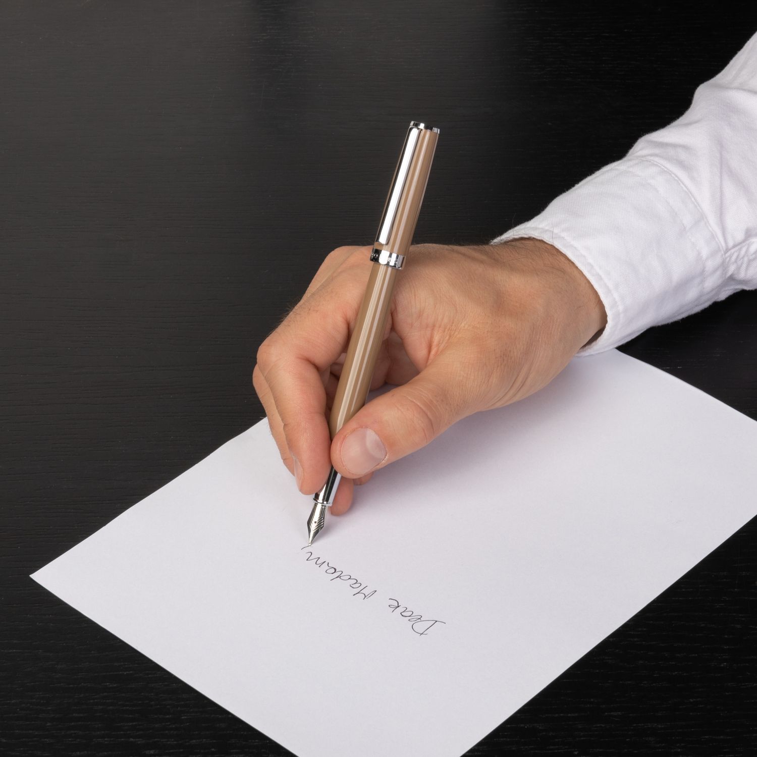 Nasza kultowa sylwetka Gear powraca z ponadczasowym zwrotem, z uproszczonym pierścieniem logo i błyszczącym lakierem. Ta nowa wersja Gear jest już ikoną i prawdopodobnie naszym najbardziej komercyjnym produktem, z luksusowym, błyszczącym lakierem na oprawie. Wyrafinowane podejście do minimalistycznego wzornictwa sprawia, że jest to natychmiastowy klasyczny przyrząd do pisania i jest dostępny w szerokiej gamie kolorów, zarówno neutralnych, takich jak ta wersja camel, jak i opcji pop bloku kolorów.