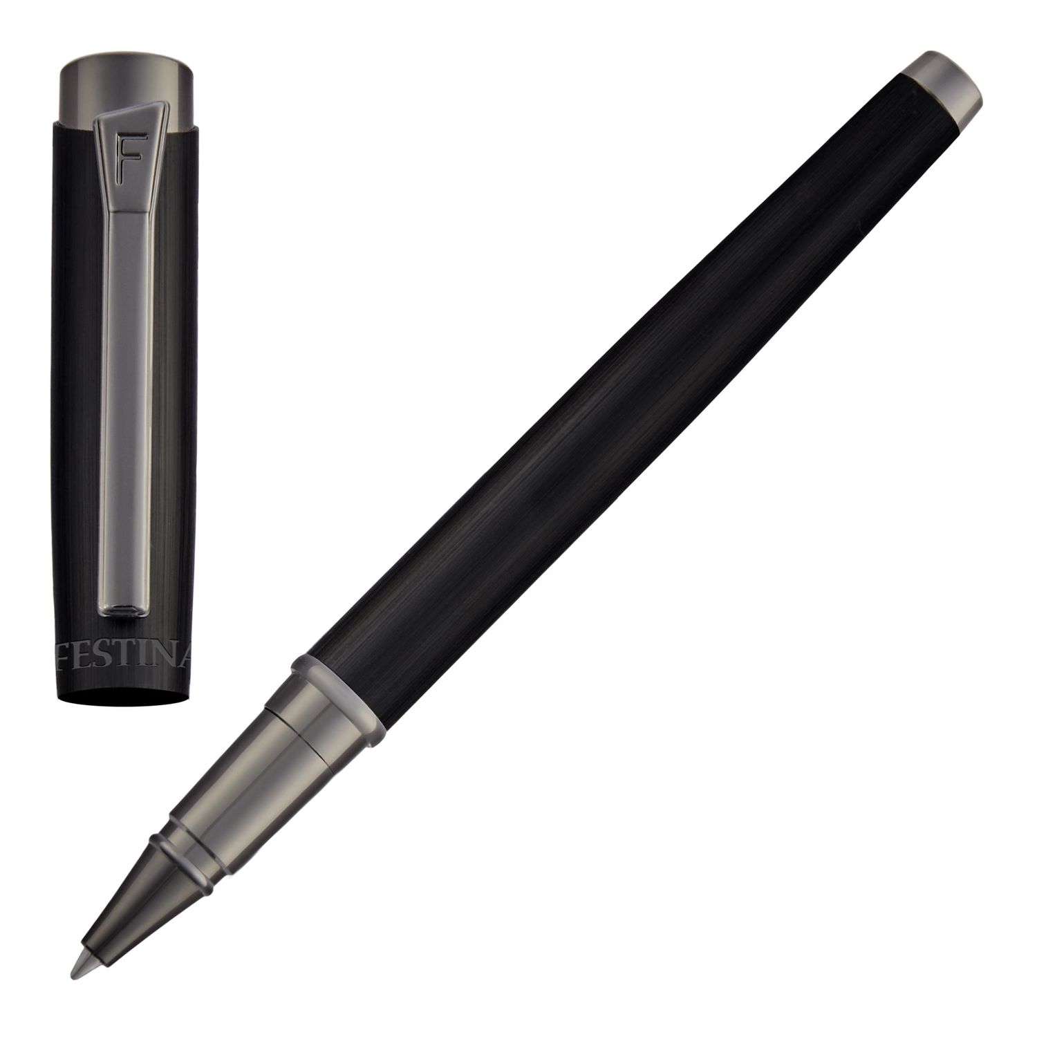 Nowe pióro wieczne „Originals” z czarnego szczotkowanego aluminium z błyszczącymi wykończeniami z pistoletu to elegancki i wszechstronny instrument piśmienny. Odważne czarne wykończenie dodaje nowoczesnego akcentu minimalistycznej oprawie, podczas gdy błyszczące wykończenia pistoletu zapewniają uderzający kontrast. Przemyślane wykonanie, kultowy klip z wygrawerowanym literą F, charakterystyczny herb na górze i wykończenie ze szczotkowanego aluminium zapewniają lekki, niewymagający wysiłku wygląd. Zaprojektowany z myślą o precyzji i praktyczności, długopis ten płynnie łączy styl i funkcjonalność, dzięki czemu jest idealnym wyborem do każdego zadania związanego z pisaniem.