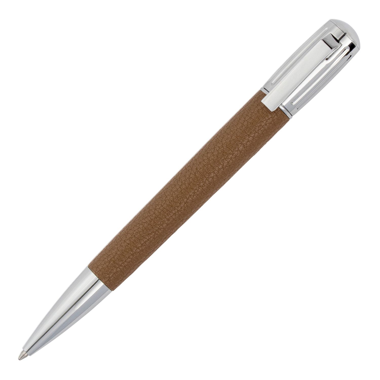 The Pure line, with its tapered yet aerodynamic silhouette, redefines modern aesthetics through structural simplicity. This new Iconic edition imbues timelessness into our long-time best-selling silhouette, featuring crisp and classical chrome accents, and barrels wrapped in luxurious, subtly pebbled textures. The ribbed design and unexpectedly placed logo on the cap add a contemporary touch to this timeless piece. The grained texture is crafted from PU. This line is available in two color versions: camel or black, each adorned with chrome trims and detailing