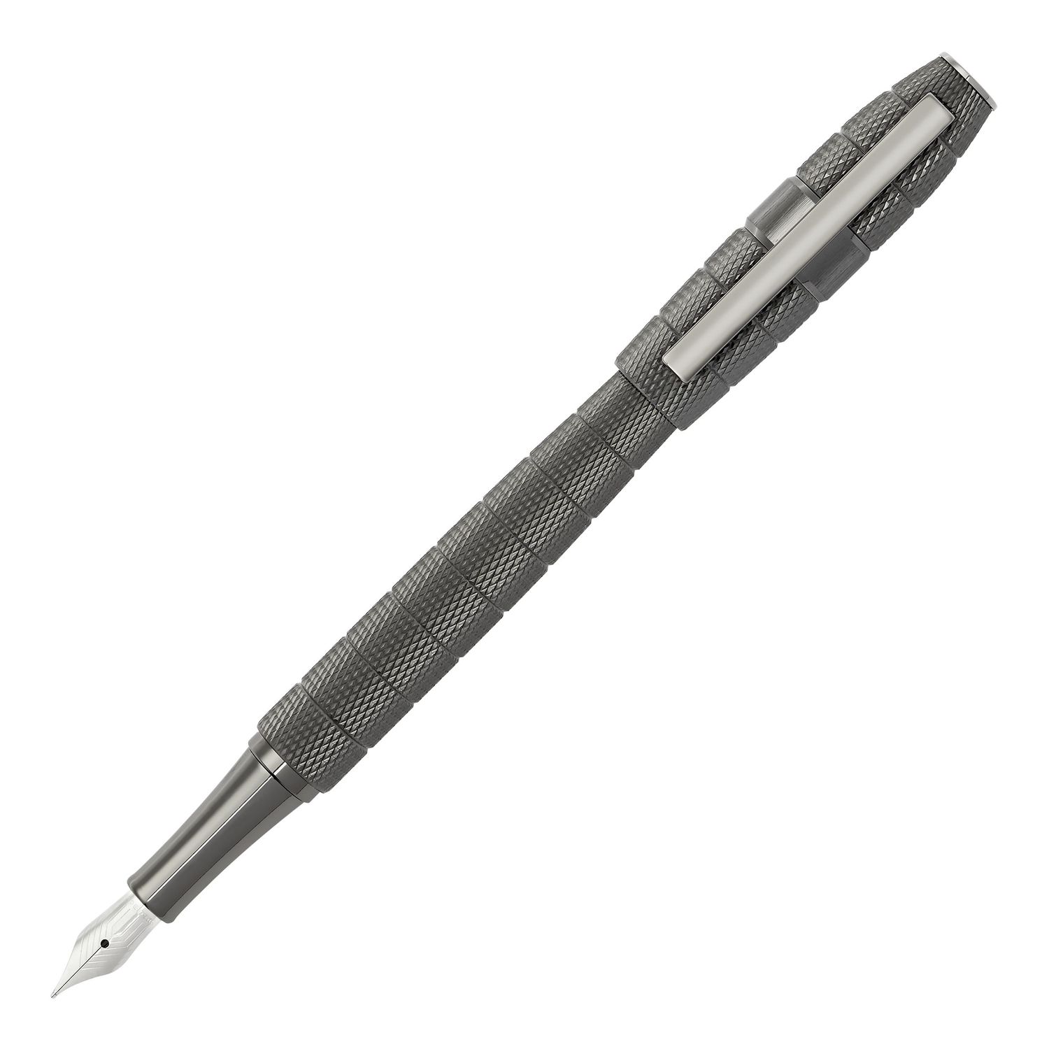 Ten wyważony, a jednocześnie mocny kształt zdobi głęboki, matowy, pokryty brązem grawerunek. Cała powierzchnia jest sekwencjonowana głębokimi, pionowymi smugami, zacierając podział między górnymi i dolnymi lufami, a przerywa je jedynie charakterystyczny, szczotkowany pierścień z logo. Rezultatem jest ultranowoczesne, wyjątkowe pióro.