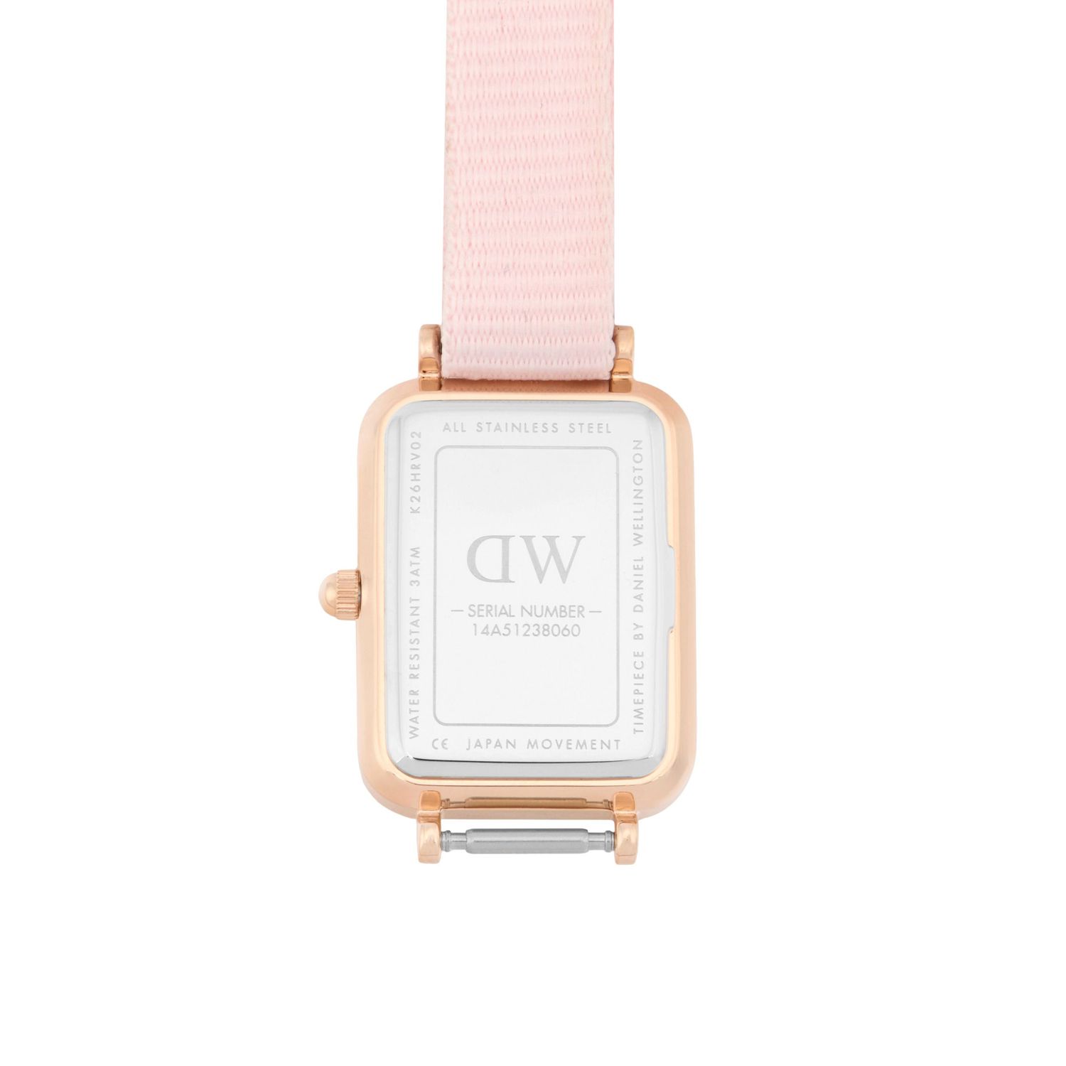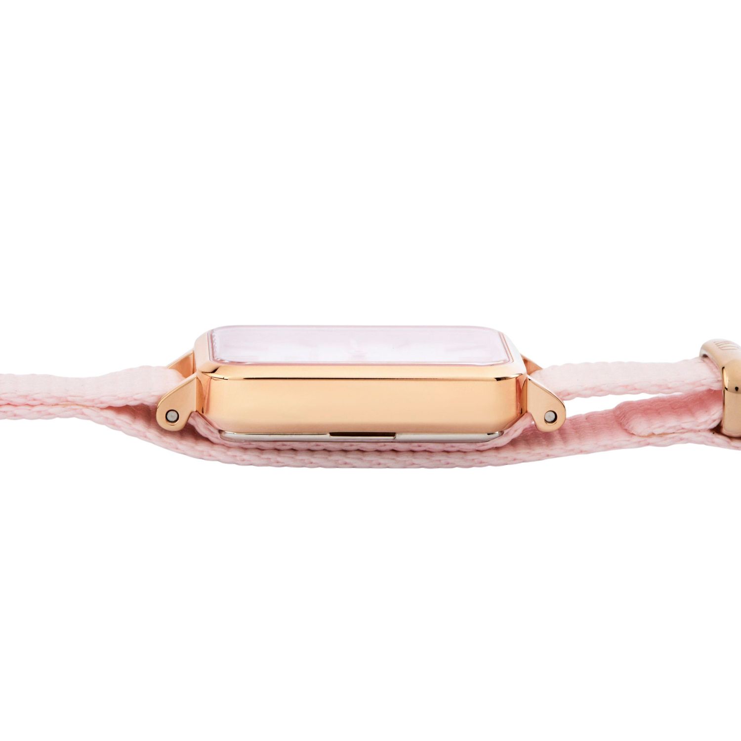 Quadro Coral ma lśniącą różową tarczę z masy perłowej. Codzienny zegarek, który tchnie elegancją. Znana z pięknej opalizacji i jedynego w swoim rodzaju charakteru, ta nowa tarcza sprawia, że każdy zegarek jest wyjątkowy i niepowtarzalny. Uzupełnieniem jest różowy pasek NATO, wykonany ze stali nierdzewnej i pokryty wyrafinowanym różowym złotem. Kwadratowe zegarki są teraz w centrum uwagi wszystkich, a dzięki temu kolorowemu zegarkowi wyznaczysz ten trend.