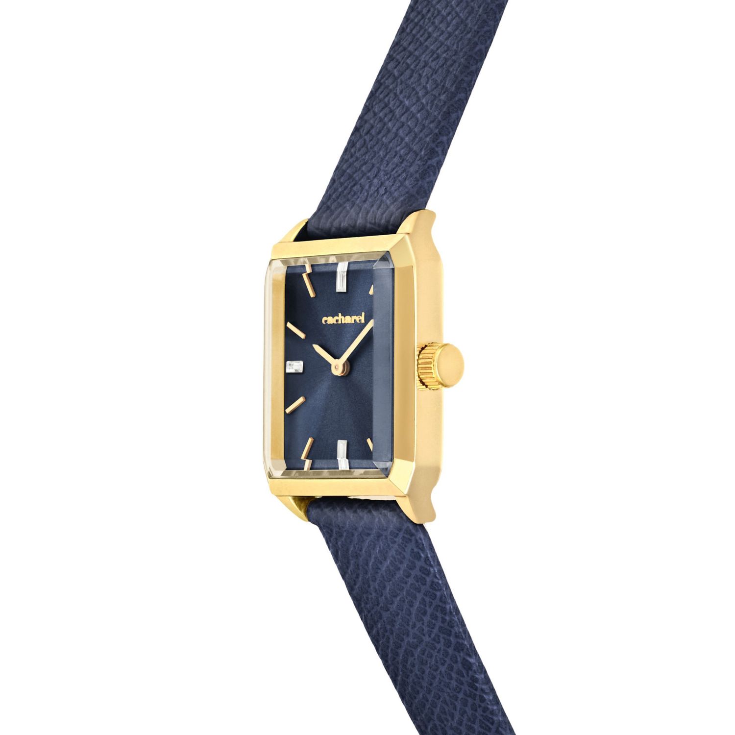 The Séraphine watch features an elegant Saffiano-finished bracelet and a perfectly proportioned angular case that feels refined and delicate without excess. The sunray-finished dial is accented with a small crystal detail, adding a subtle touch of light. Available in taupe, black, navy or light grey, it brings a timeless, graceful presence to any look.