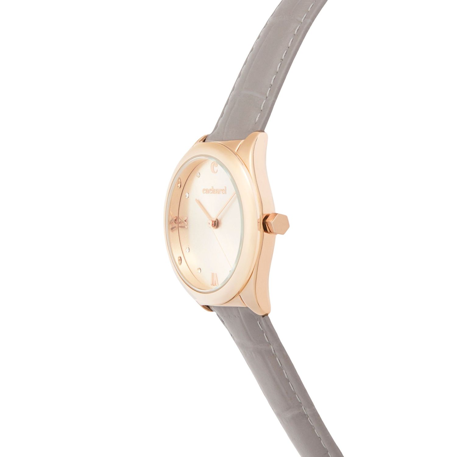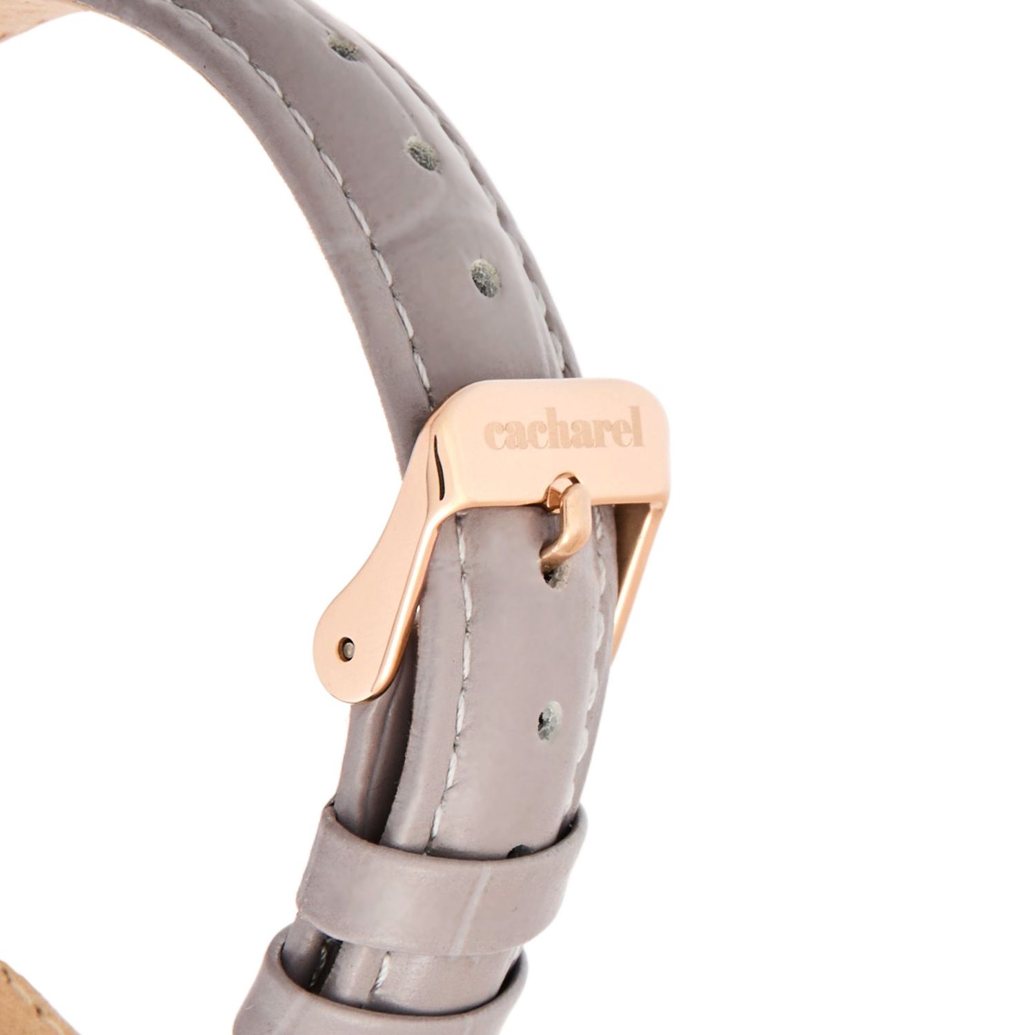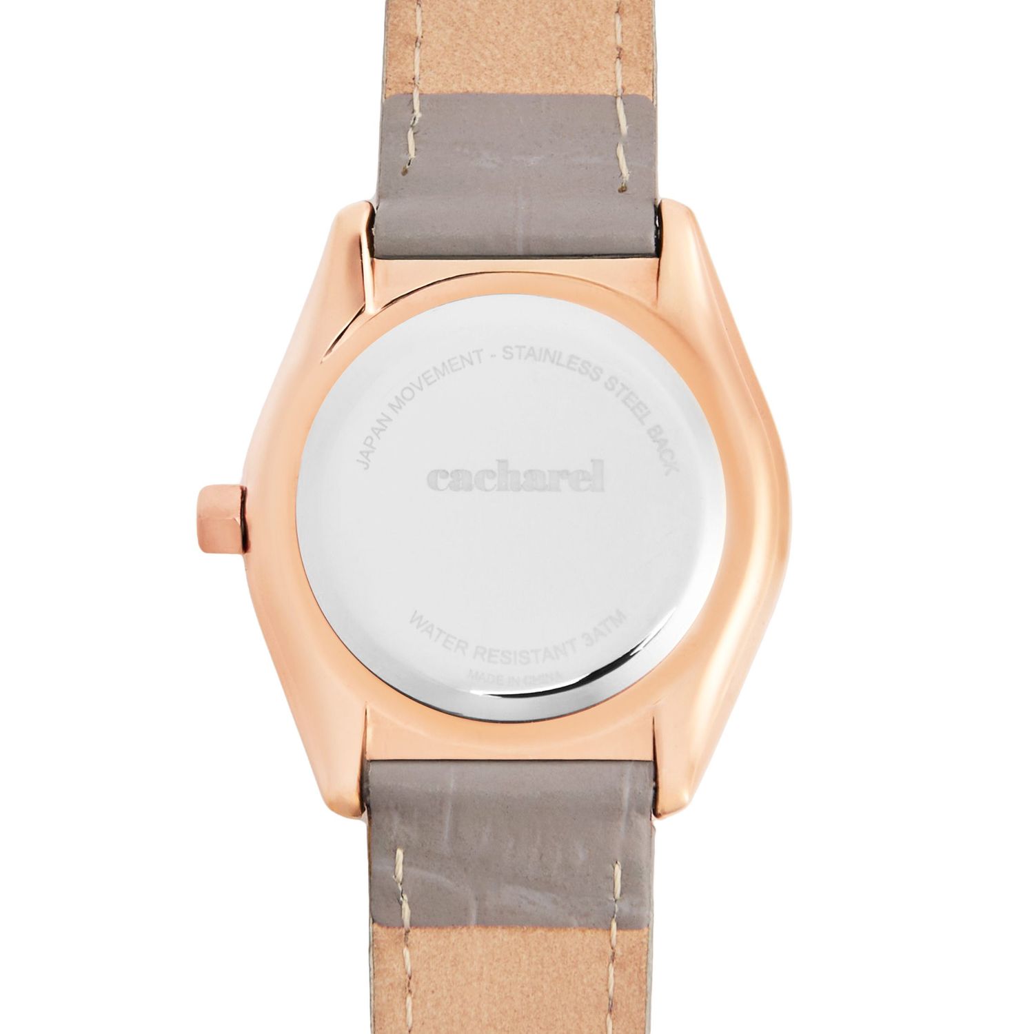 Zegarek „Violette” w kolorze szarym i różowo-złotym jest ostatecznym wyrazem elegancji. Wyposażony w skórzaną bransoletę z nadrukiem crocco, kopertę w kolorze różowego złota i wyrafinowane metalowe akcenty w kolorze różowego złota, zegarek ten emanuje ponadczasowym luksusem. Tarcza słoneczna łapie światło przy każdym ruchu, podnosząc jego wyrafinowany design. Ten klasyczny zegarek bez wysiłku łączy się z innymi akcesoriami z kolekcji, dodając delikatny, wyrafinowany akcent do każdego wyglądu.