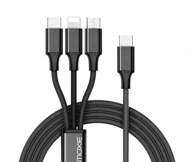 Kabel Type C Triofast firmy Moxie może ładować każdy smartfon dzięki potrójnym złączom TypeC, Lightning i Micro USB.